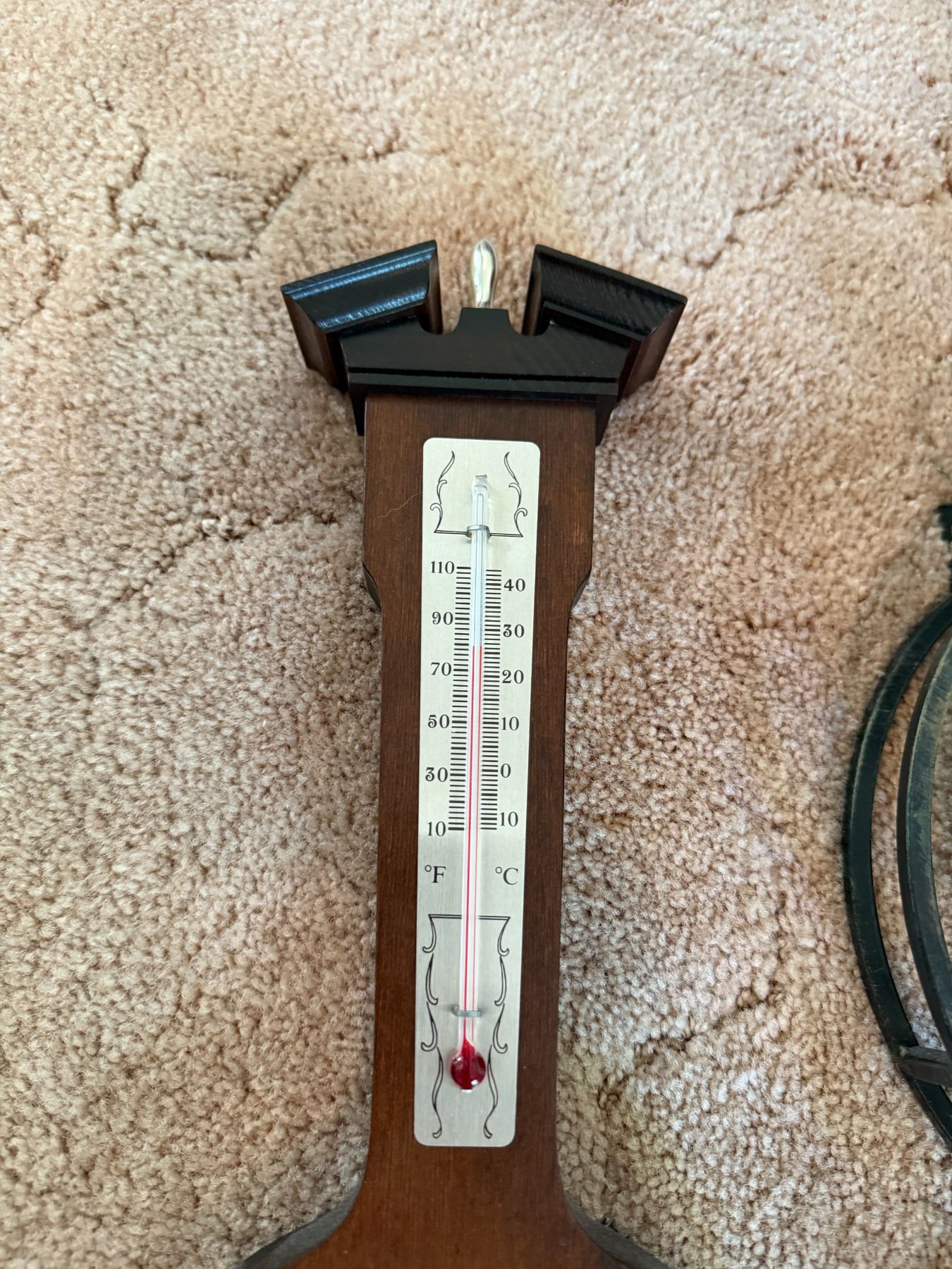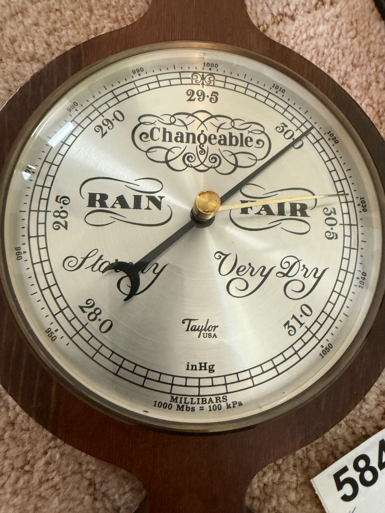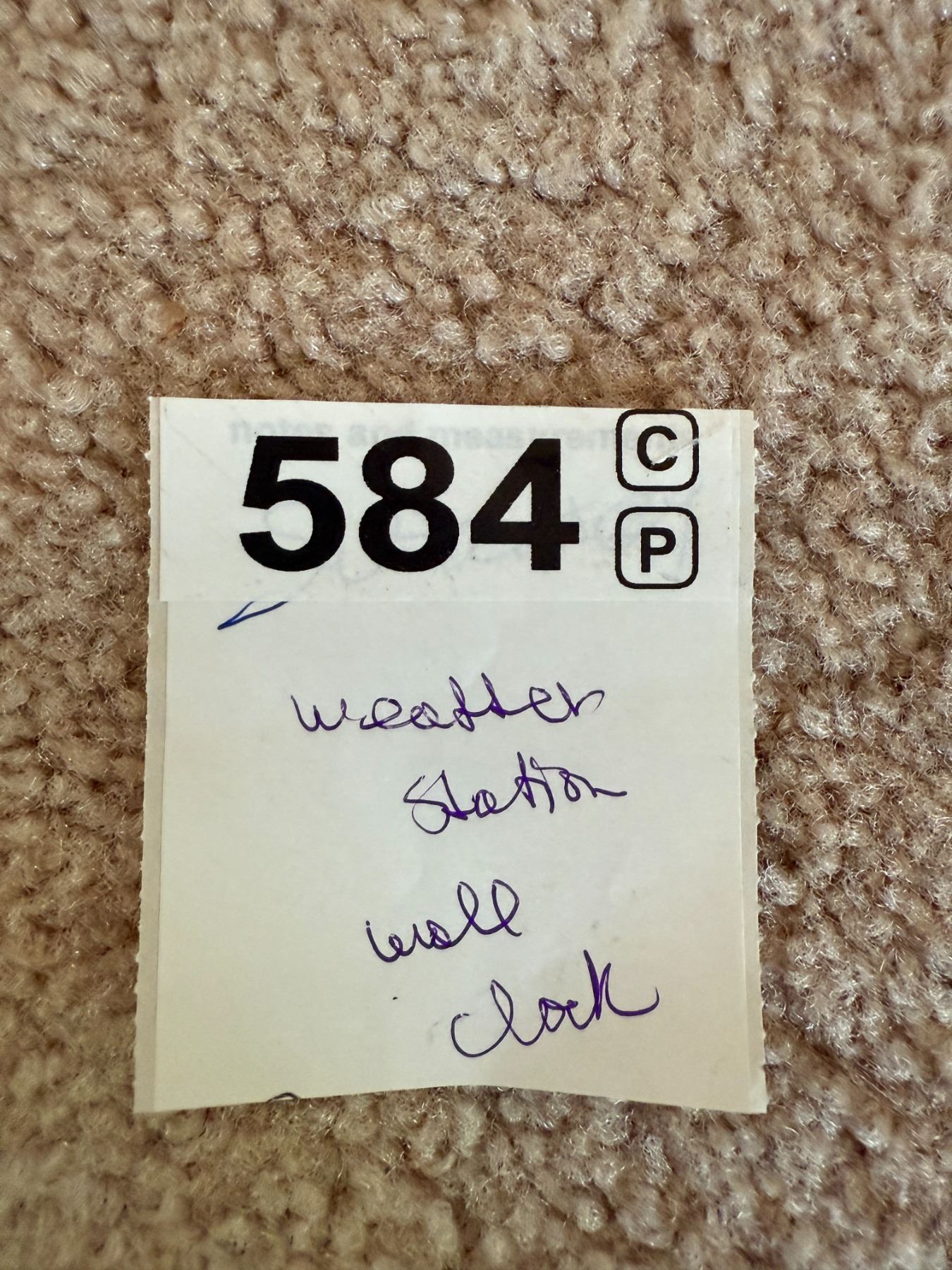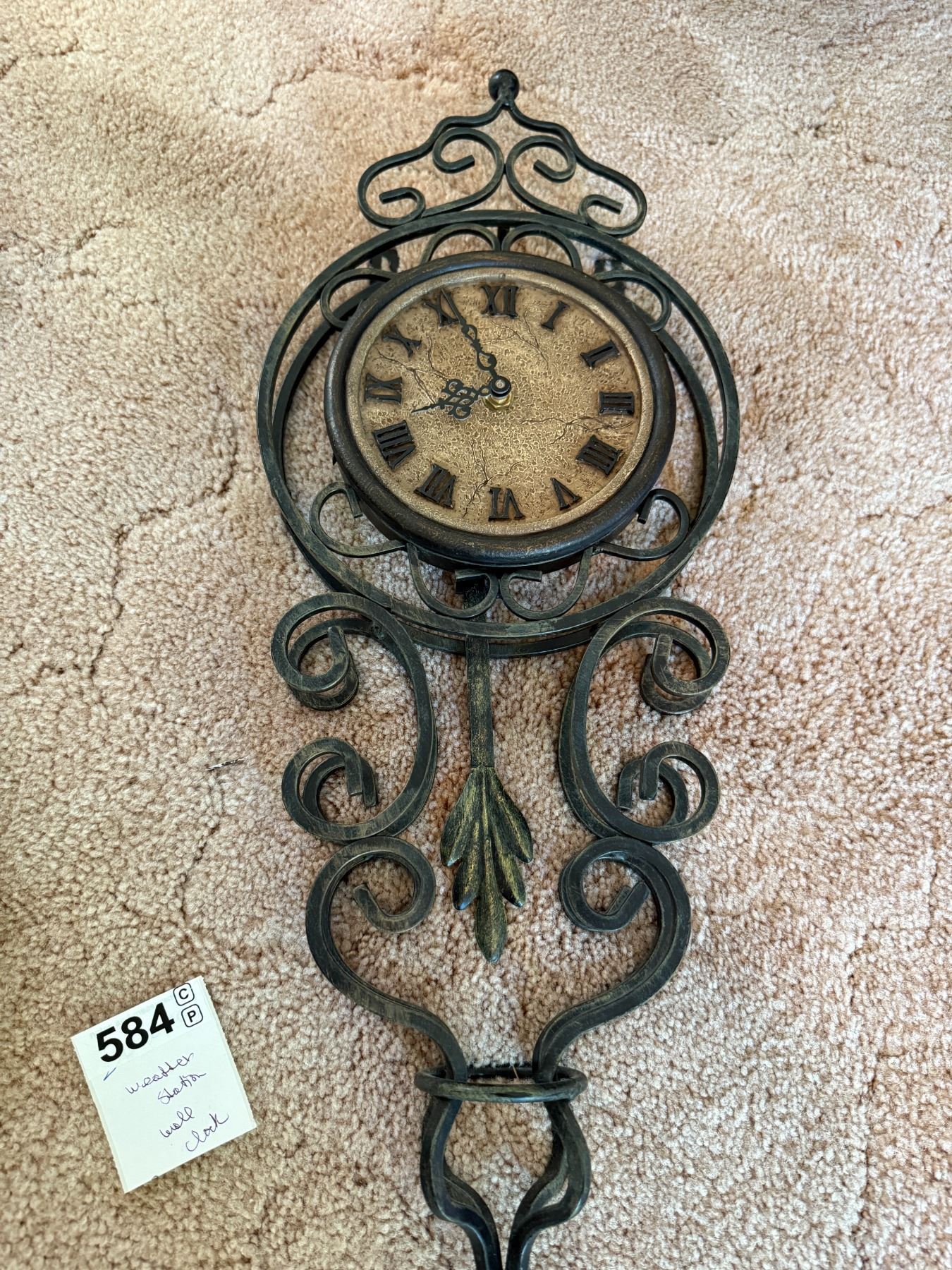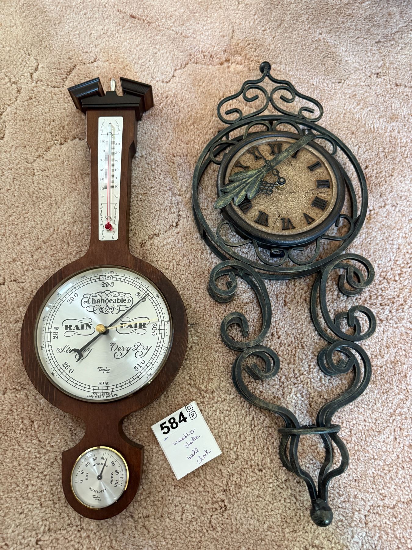 Weather station - missing pinial, and iron wall clock. Untested. As is. In bedroom 2.