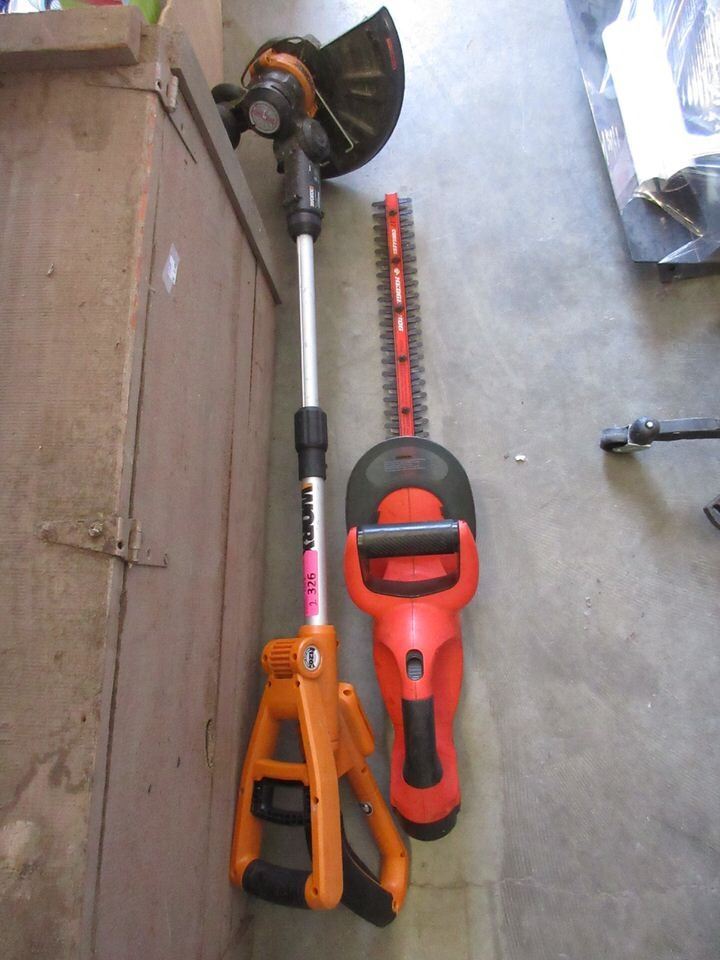 Weed eater has no battery, and hedge trimmer with battery but no charger.