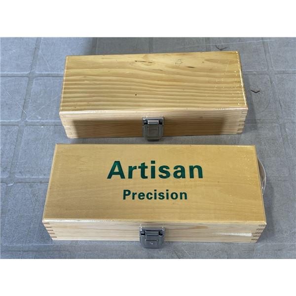 2 BRAND NEW WINE GIFT BOXES - 2 BOTTLE WINE BOX W/ CORKSCREW, BOTTLE STOPPER, POURER, THERMOMETER, A