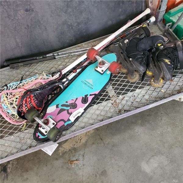KRYPTONICS MINI BOARD, LACROSSE STICKS, K2 ROLLERBLADES AND 2 GOLF CLUBS