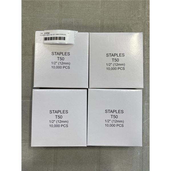 4 CASES, NEW T50 1/2" 12MM STAPLES, 40,000 TOTAL STAPLES