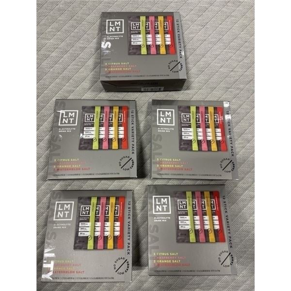 5 NEW LMNT RECHARGE VARIETY 12 PACK ELECTROLYTE DRINK MIX - RETAIL $130, BB 04/2025