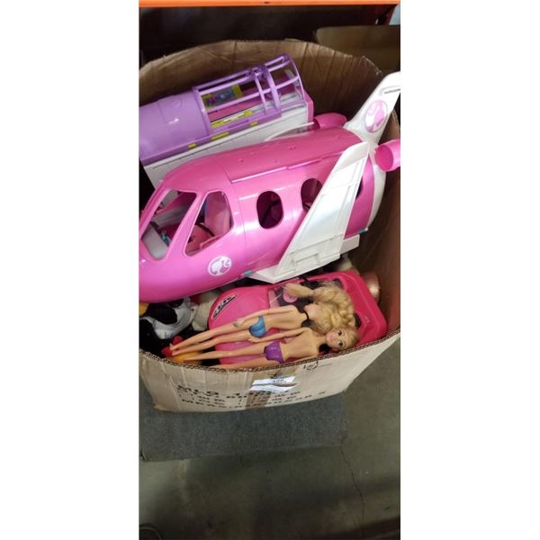 LARGE BOX OF BARBIE VEHICLES AND TOYS