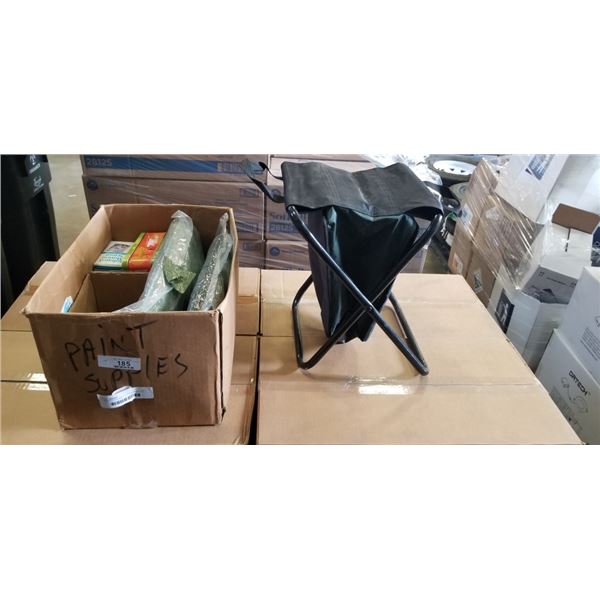 NEW 9'6 X 11'8 TARP. CASTOR WHEEL SET OF 4, AND PORTABLE STOOL/ COOLER