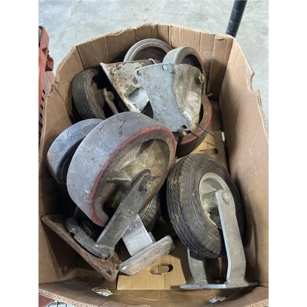 3 TRAYS OF TOOLS, PLUMBING HOSES, CASTERS, ETC