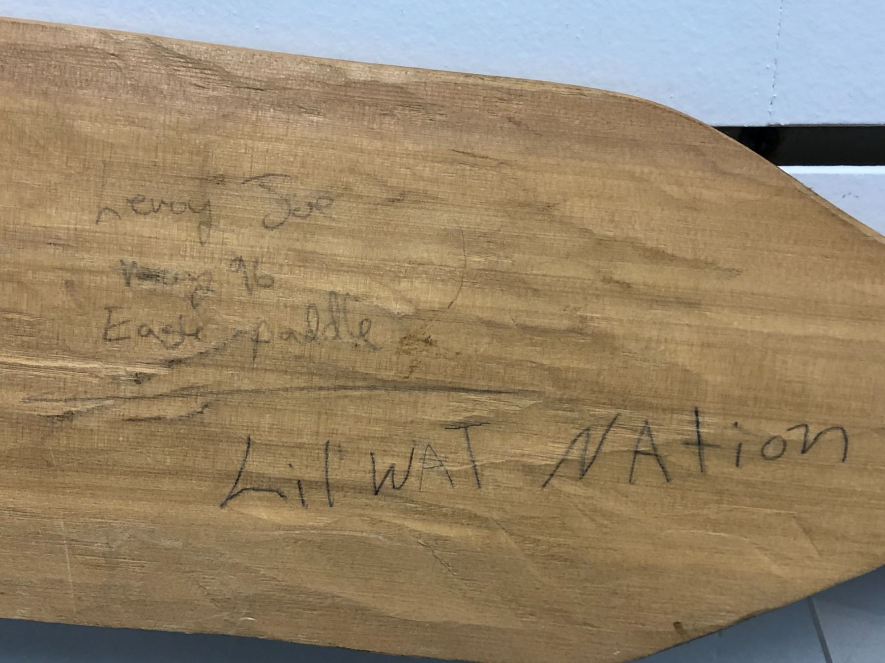 West Coast First Nations carved wooden "Eagle" paddle by Leroy Joe 1996 Lil'wat Nation - 39in long