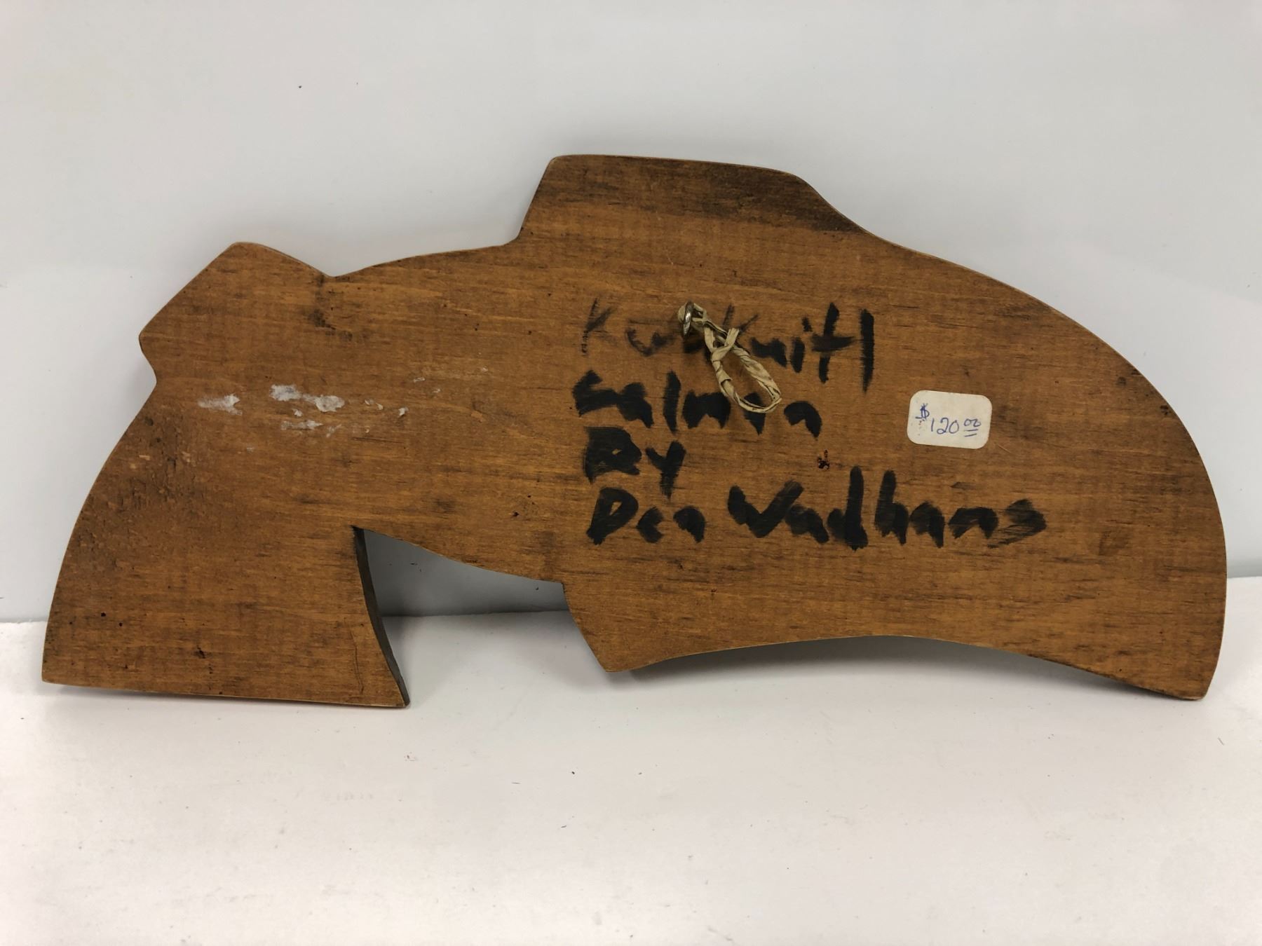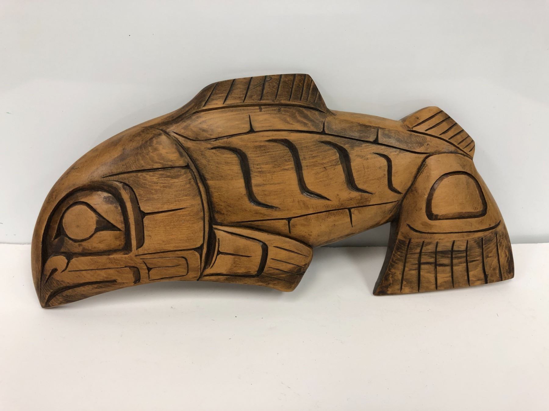 West Coast First Nations carving "Kwaknitl Salmon" by artist D Wadhans - approx. 11in x 5in