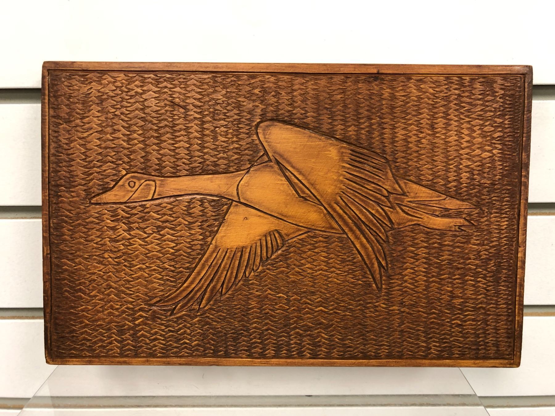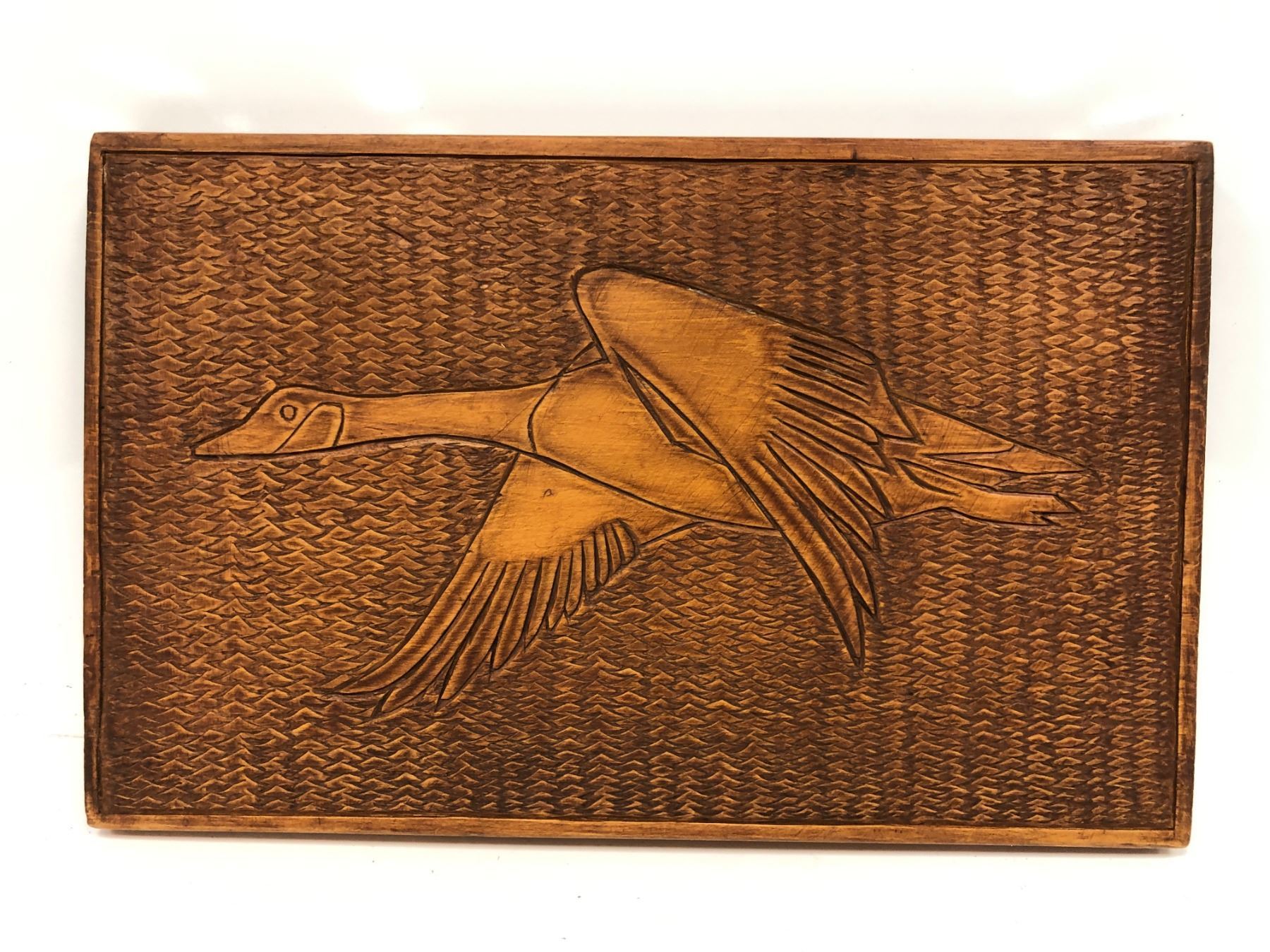West Coast First Nations yellow cedar carving "Goose" by artist D Shrimpton 1984 - approx. 11in x 7in