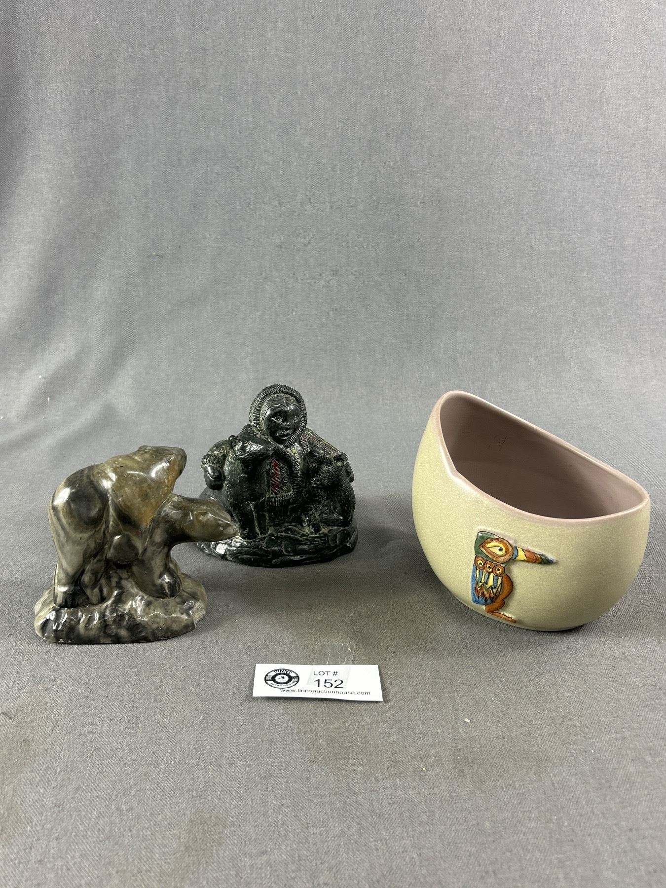 West Coast Indian Design Canada 7117 Bowl & 2 Stone Carving - Inuit w/ Dogs & Polar Bears