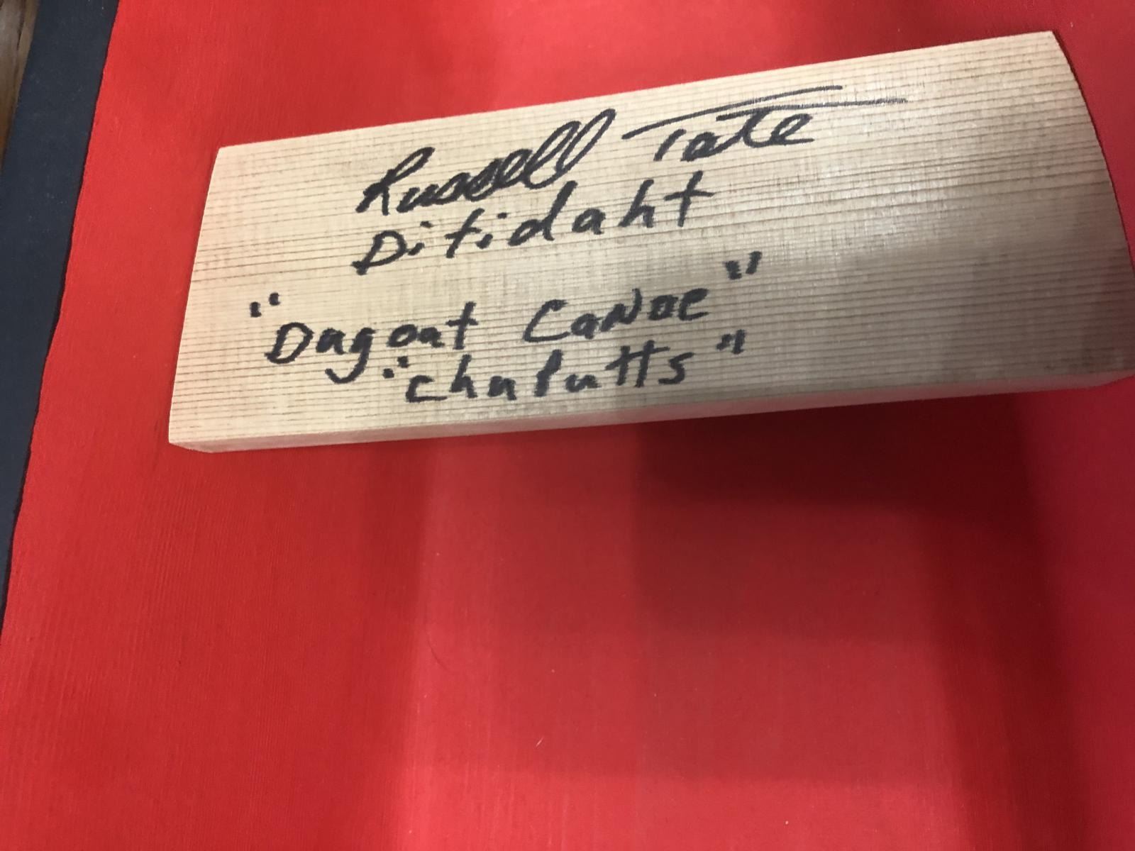 West Coast Native Dug Out Canoe with Sea Serpent Spirit....6 feet long, 11 inches high, 26 CM width. This Dugout Canoe is handcrafted Red Ceder by First Nation Artist Russell Tate......Russell Tate from the Ditidaht First Nation on the southwest coast of Vancouver Island. He started carving in 2004, artists such as Art Thompson and the artists on the Ravens and Eagles show inspired him. Russell learned how to wood carved mostly working on his own. He specializes in masks and paddles, but is now working on small poles and miniatures for regalia. Russell has worked with Ben David and Cecil Dawson, and has collaborated on several pieces with Cecil (Please note- This is large artwork and shipping will be near 250-300 dollars to ship anywhere in North America)