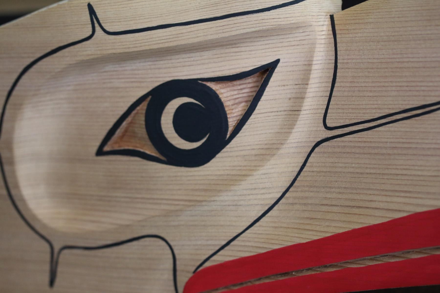 West Coast Native Hand Carved 3D Eagle Head ....hand carved on yellow cedar length 14 Inces...by First Nation Artist Russell Tate.....Russell Tate from the Ditidaht First Nation on the southwest coast of Vancouver Island. He started carving in 2004, artists such as Art Thompson and the artists on the Ravens and Eagles show inspired him. Russell learned how to wood carved mostly working on his own. He specializes in masks and paddles, but is now working on small poles and miniatures for regalia. Russell has worked with Ben David and Cecil Dawson, and has collaborated on several pieces with Cecil
