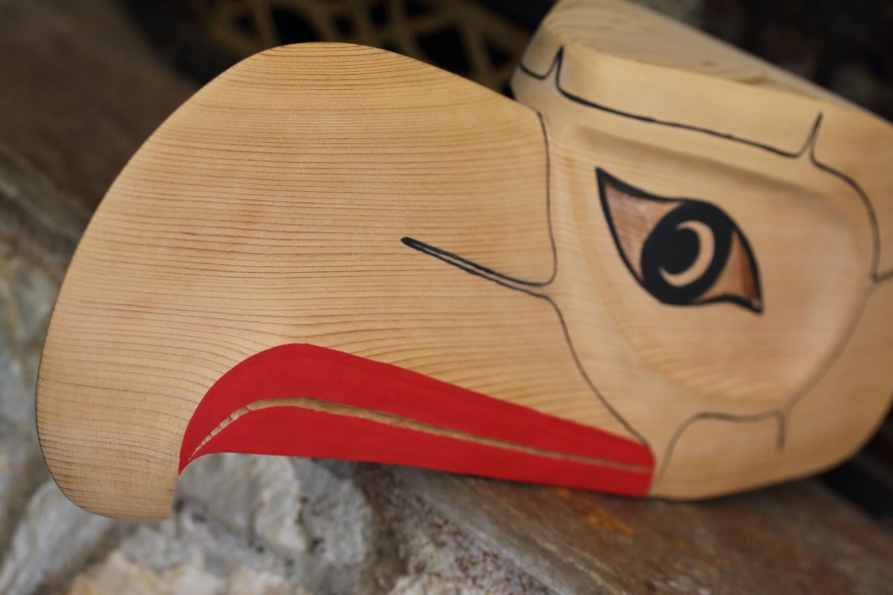 West Coast Native Hand Carved 3D Eagle Head ....hand carved on yellow cedar length 14 Inces...by First Nation Artist Russell Tate.....Russell Tate from the Ditidaht First Nation on the southwest coast of Vancouver Island. He started carving in 2004, artists such as Art Thompson and the artists on the Ravens and Eagles show inspired him. Russell learned how to wood carved mostly working on his own. He specializes in masks and paddles, but is now working on small poles and miniatures for regalia. Russell has worked with Ben David and Cecil Dawson, and has collaborated on several pieces with Cecil