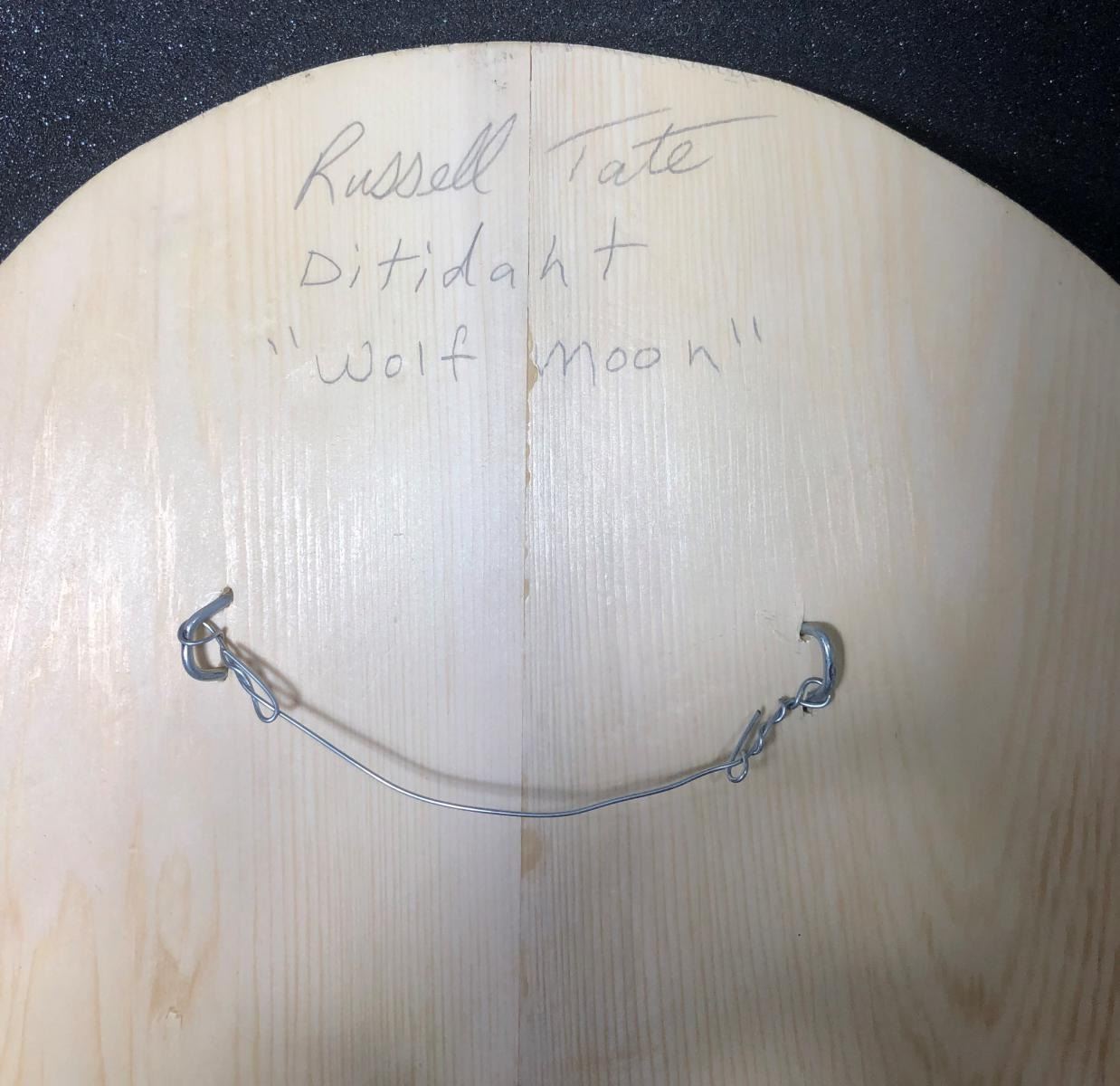 West Coast Native Moon Mask with Wolf Spirit........10 inches size.....Hand Craved on the yellow cedar by First Nation Artist Russell Tate......Russell Tate from the Ditidaht First Nation on the southwest coast of Vancouver Island. He started carving in 2004, artists such as Art Thompson and the artists on the Ravens and Eagles show inspired him. Russell learned how to wood carved mostly working on his own. He specializes in masks and paddles, but is now working on small poles and miniatures for regalia. Russell has worked with Ben David and Cecil Dawson, and has collaborated on several pieces with Cecil