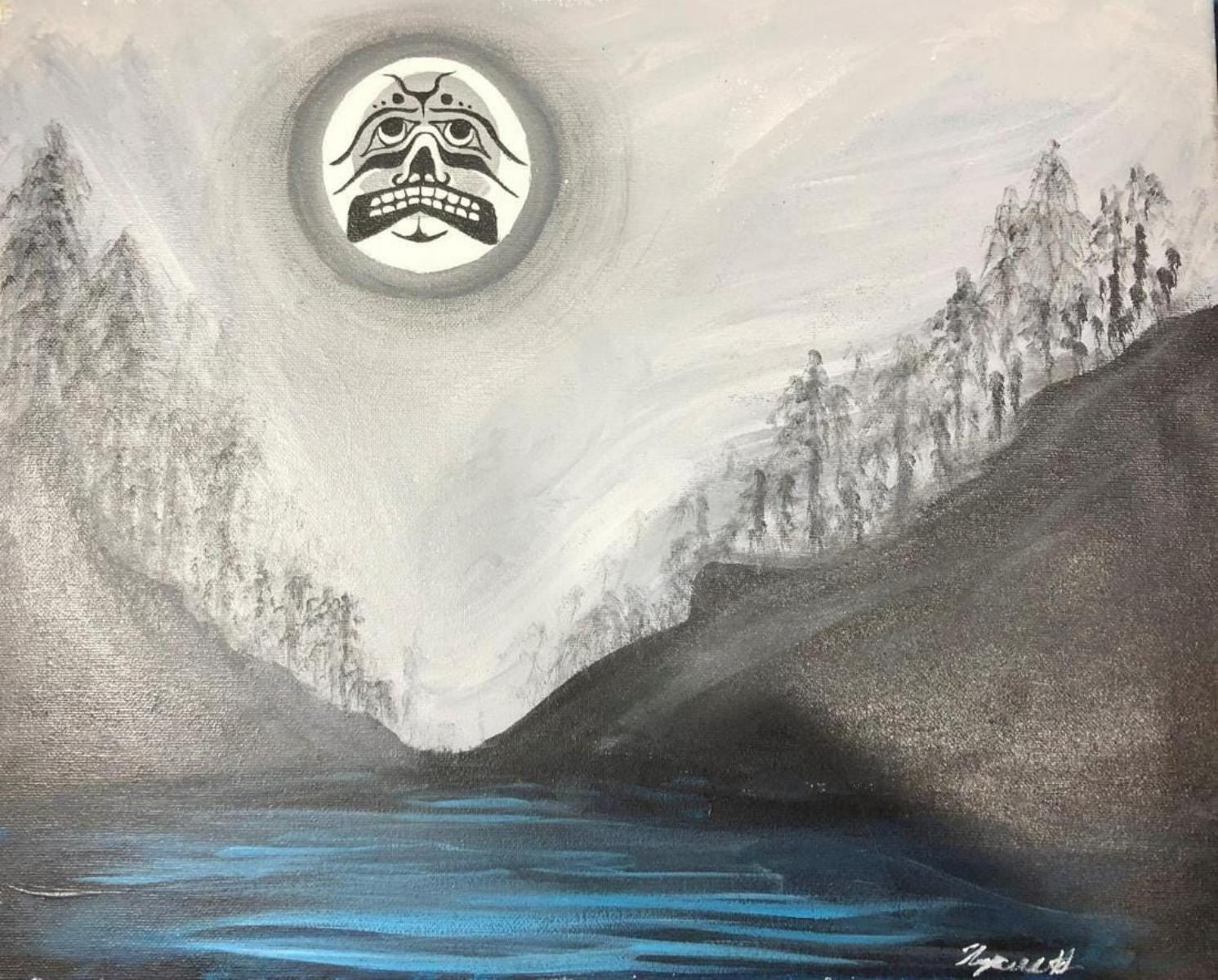 West Coast Native Original Winter Moon Painting on canvas.....size 20x16 Inches...by First Nation artist Cgnaire