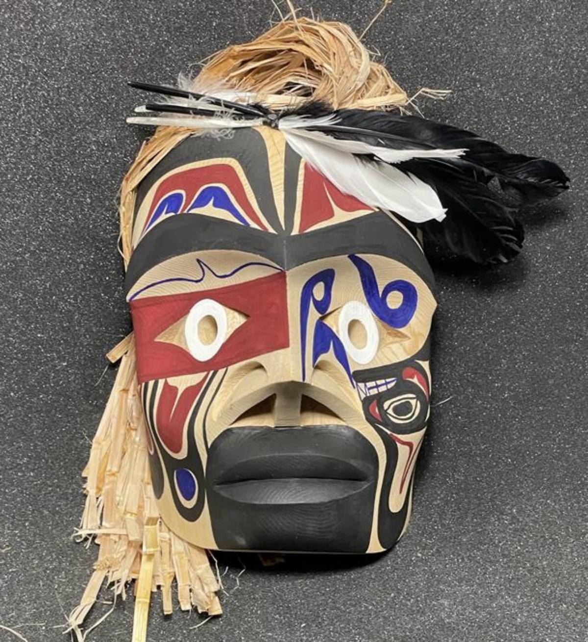 West Coast Native Hand Carved Warrior Mask with Killer Whale Spirit........8 inches plus the accessories height....cedar baek hairs .....Hand Craved on the Red cedar by First Nation Artist Russell Tate......Russell Tate from the Ditidaht First Nation on the southwest coast of Vancouver Island. He started carving in 2004, artists such as Art Thompson and the artists on the Ravens and Eagles show inspired him. Russell learned how to wood carved mostly working on his own. He specializes in masks and paddles, but is now working on small poles and miniatures for regalia. Russell has worked with Ben David and Cecil Dawson, and has collaborated on several pieces with Cecil