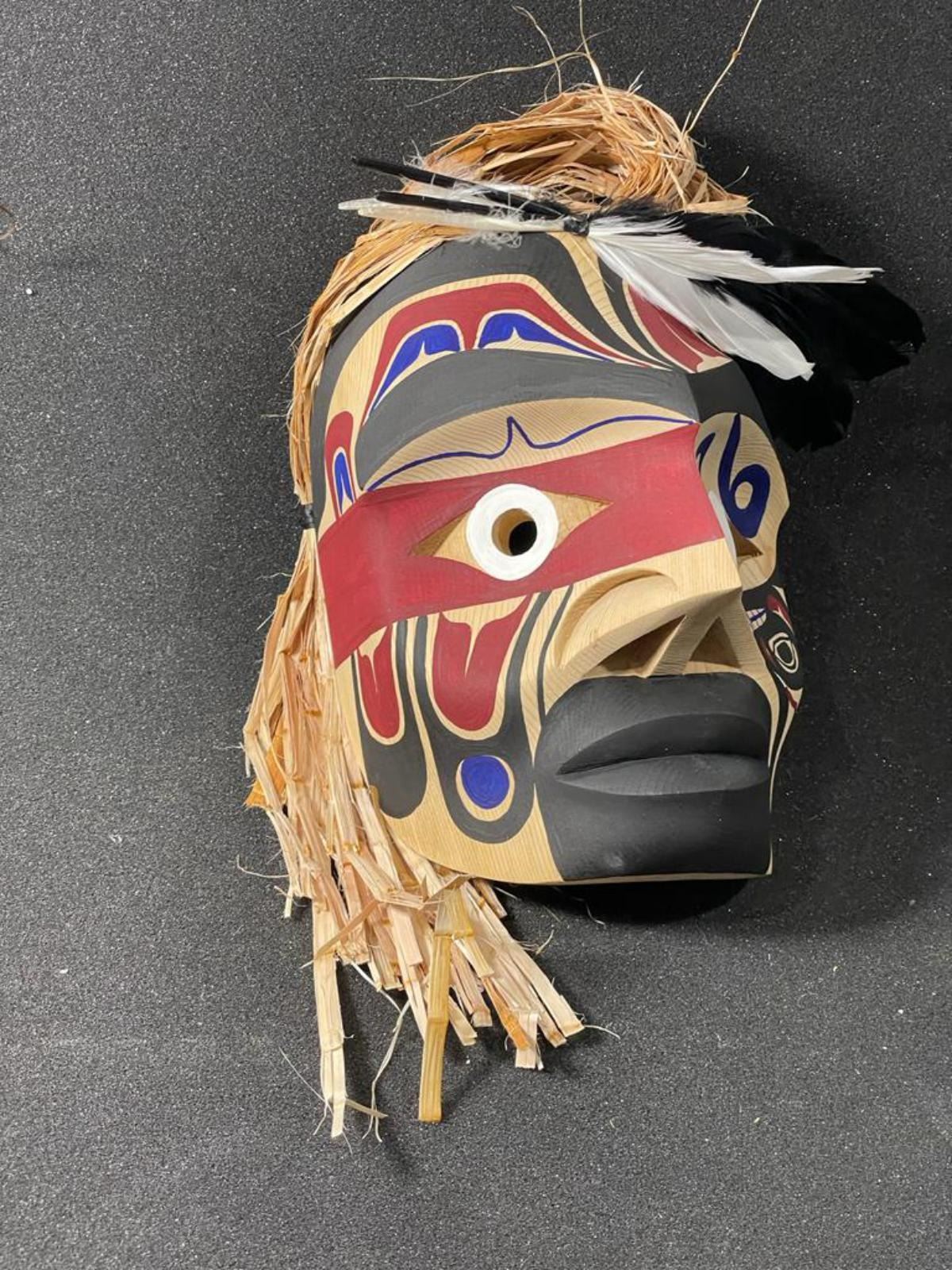 West Coast Native Hand Carved Warrior Mask with Killer Whale Spirit........8 inches plus the accessories height....cedar baek hairs .....Hand Craved on the Red cedar by First Nation Artist Russell Tate......Russell Tate from the Ditidaht First Nation on the southwest coast of Vancouver Island. He started carving in 2004, artists such as Art Thompson and the artists on the Ravens and Eagles show inspired him. Russell learned how to wood carved mostly working on his own. He specializes in masks and paddles, but is now working on small poles and miniatures for regalia. Russell has worked with Ben David and Cecil Dawson, and has collaborated on several pieces with Cecil