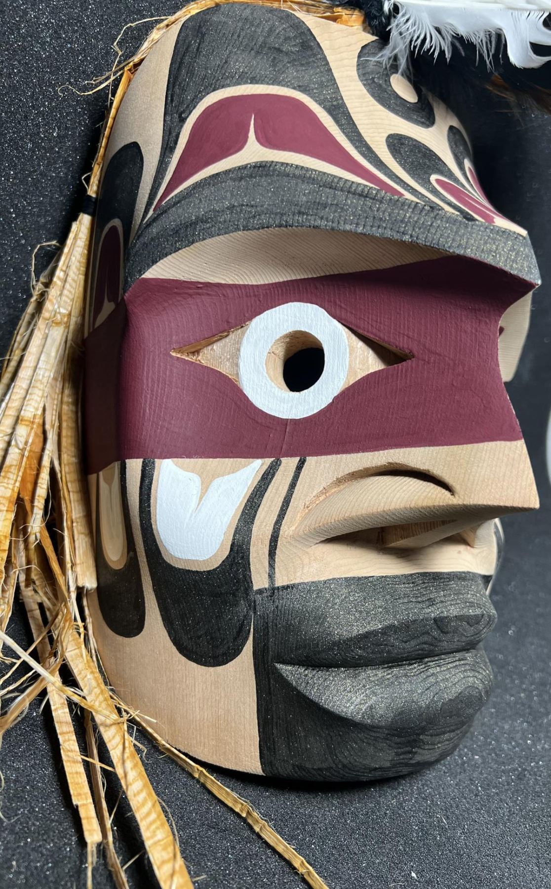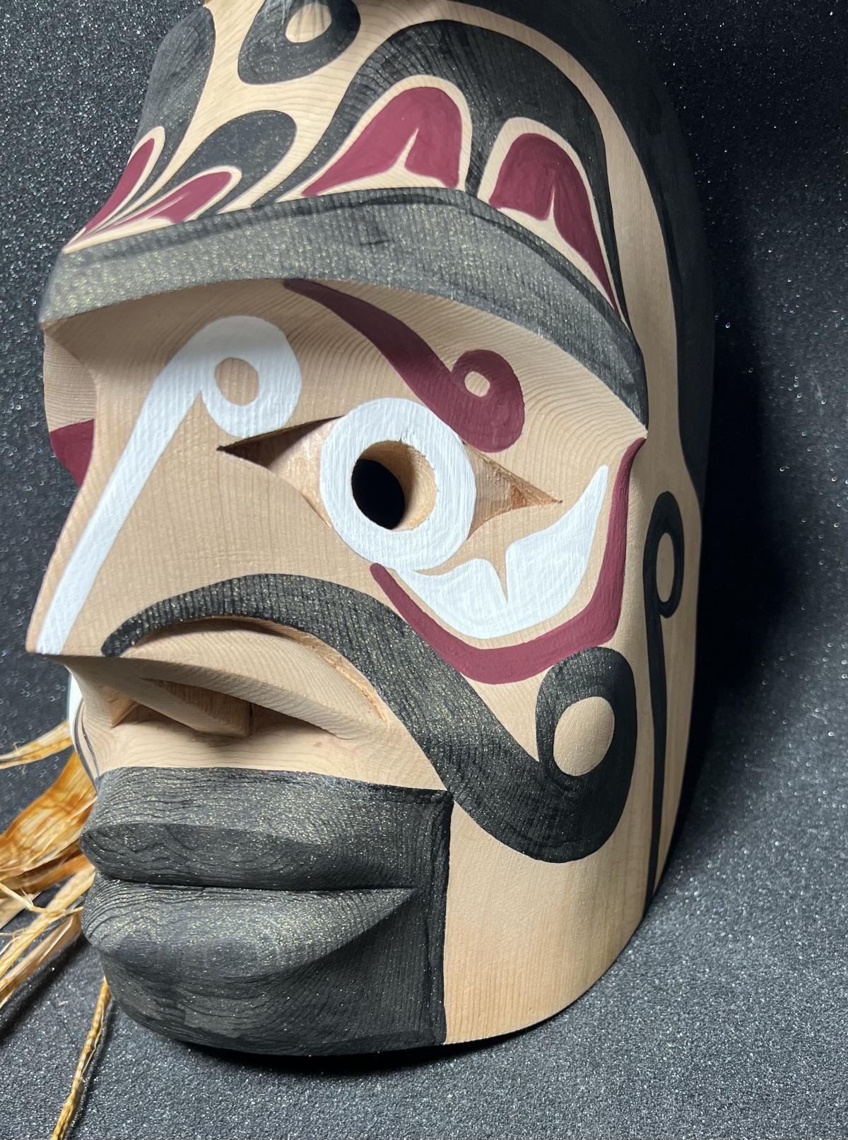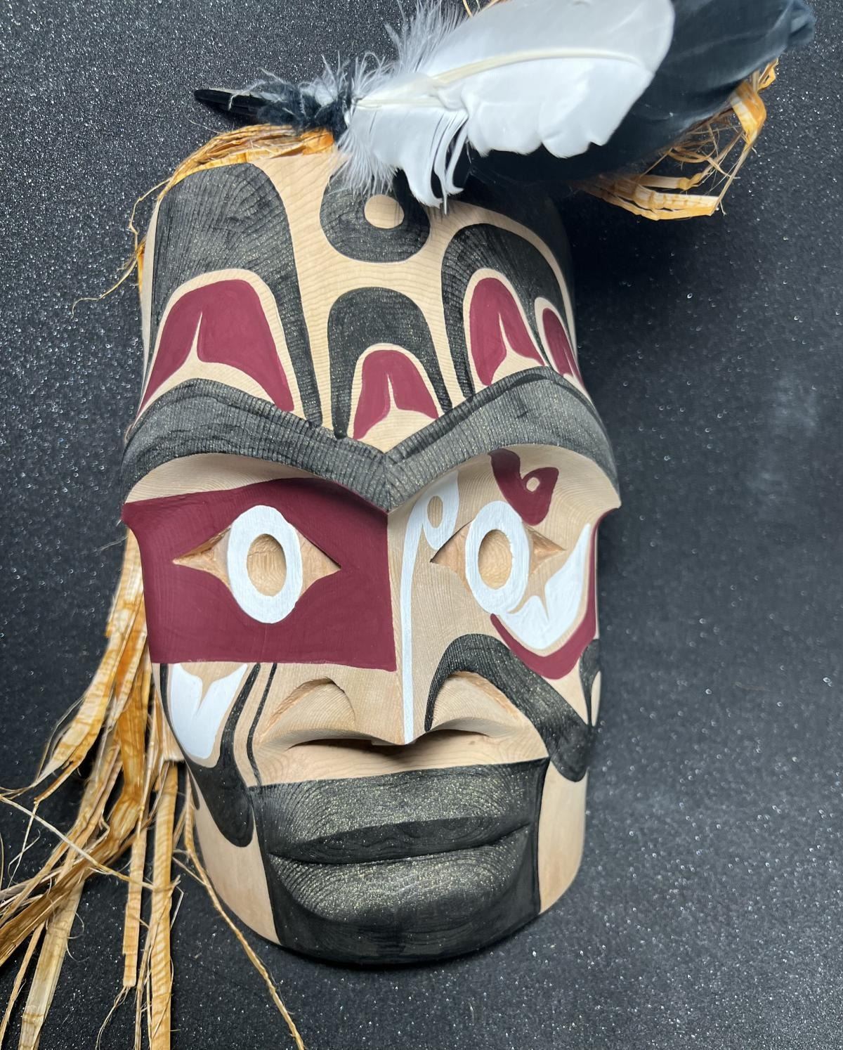 West Coast Native Hand Carved Warrior Mask ........10 inches plus the accessories height.... .....Hand Craved on the Red cedar by First Nation Artist Russell Tate......Russell Tate from the Ditidaht First Nation on the southwest coast of Vancouver Island. He started carving in 2004, artists such as Art Thompson and the artists on the Ravens and Eagles show inspired him. Russell learned how to wood carved mostly working on his own. He specializes in masks and paddles, but is now working on small poles and miniatures for regalia. Russell has worked with Ben David and Cecil Dawson, and has collaborated on several pieces with Cecil