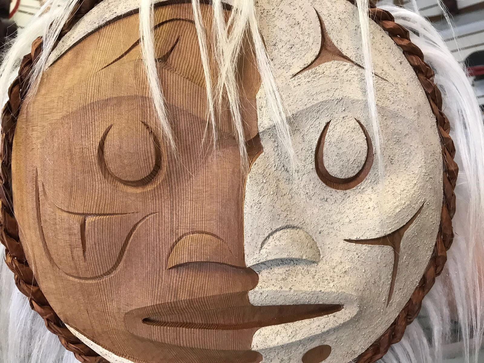 West Coast Native Winter Moon Mask..........size 12 inch...hand carved and painted on Red Cedar wood ..by First Nations master carver.....Doug David.