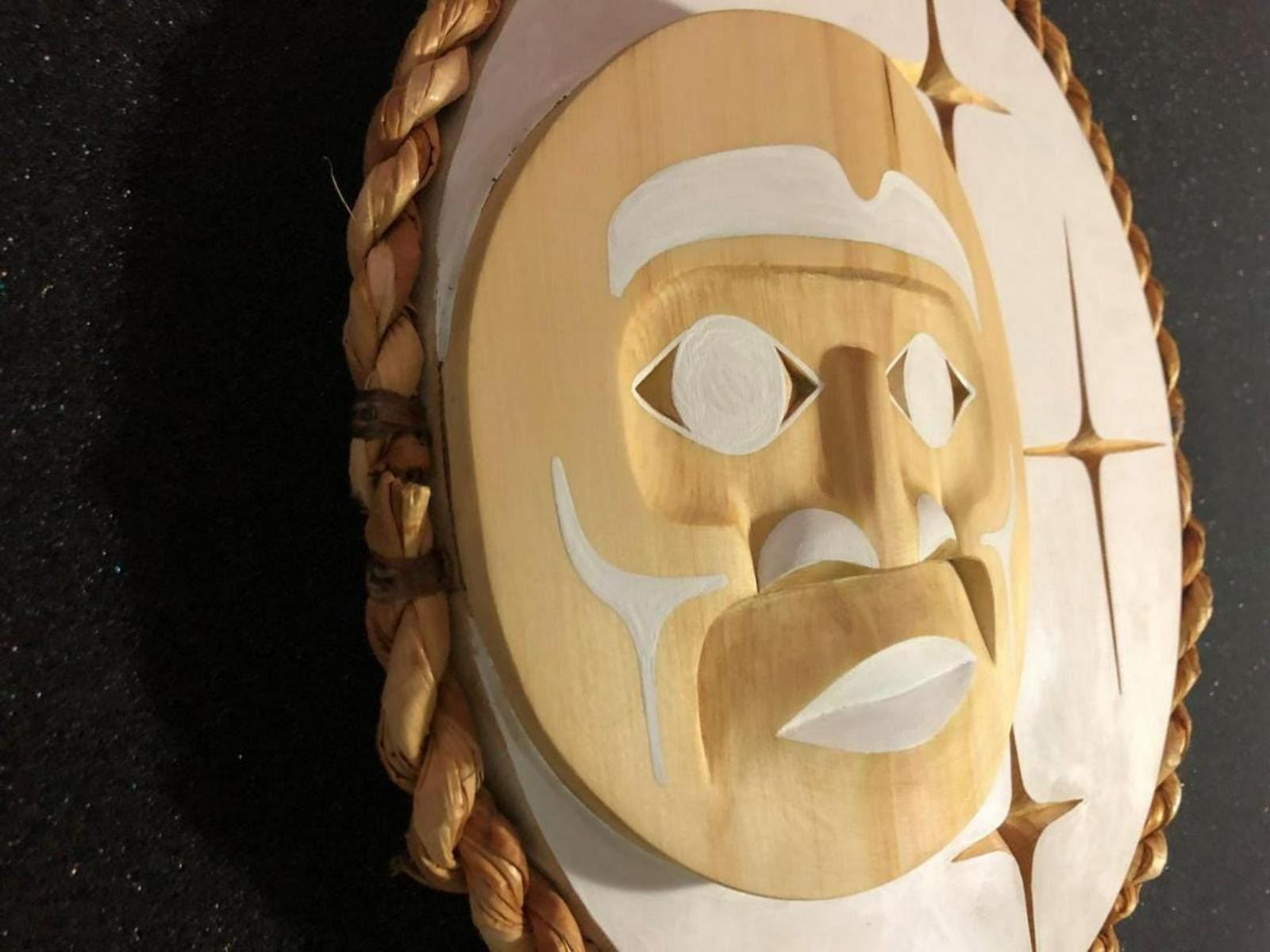 West Coast Native Winter Moon Mask ........12 inches size.....Hand Craved on the yellow cedar by First Nation Artist Russell Tate......Russell Tate from the Ditidaht First Nation on the southwest coast of Vancouver Island. He started carving in 2004, artists such as Art Thompson and the artists on the Ravens and Eagles show inspired him. Russell learned how to wood carved mostly working on his own. He specializes in masks and paddles, but is now working on small poles and miniatures for regalia. Russell has worked with Ben David and Cecil Dawson, and has collaborated on several pieces with Cecil