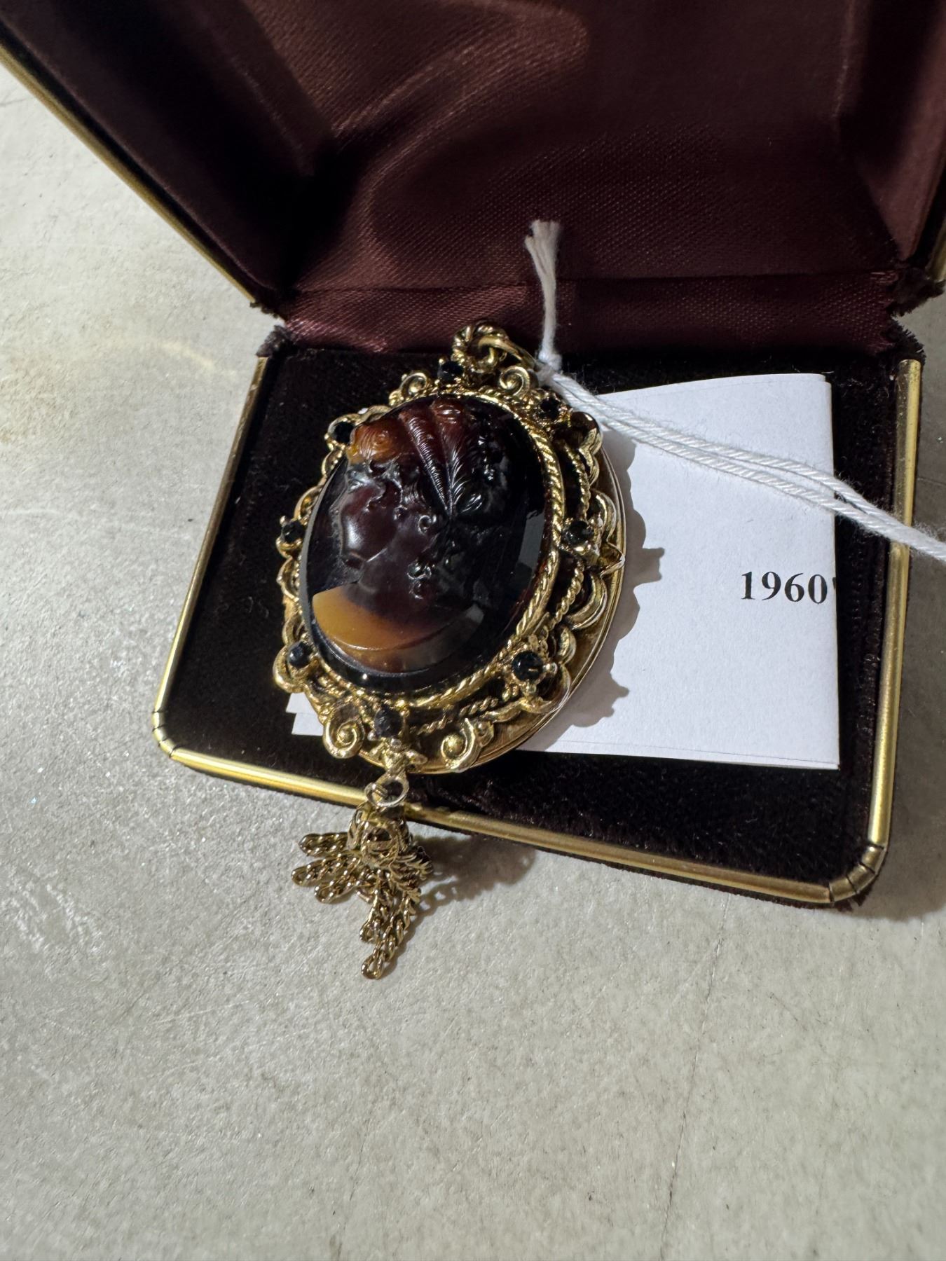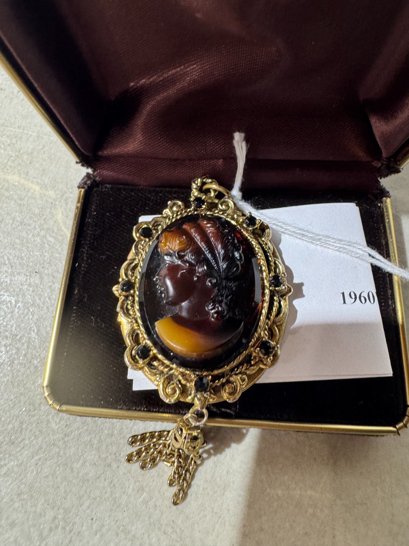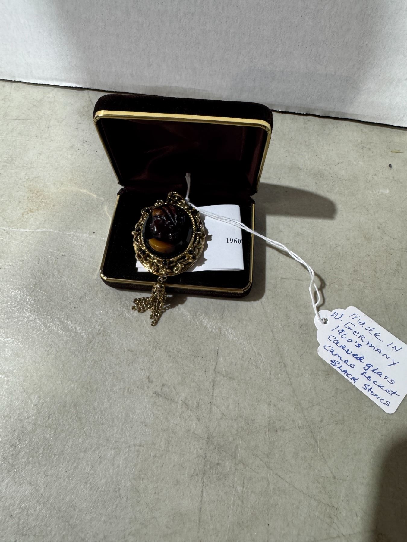 West German 1960s carved glass cameo locket