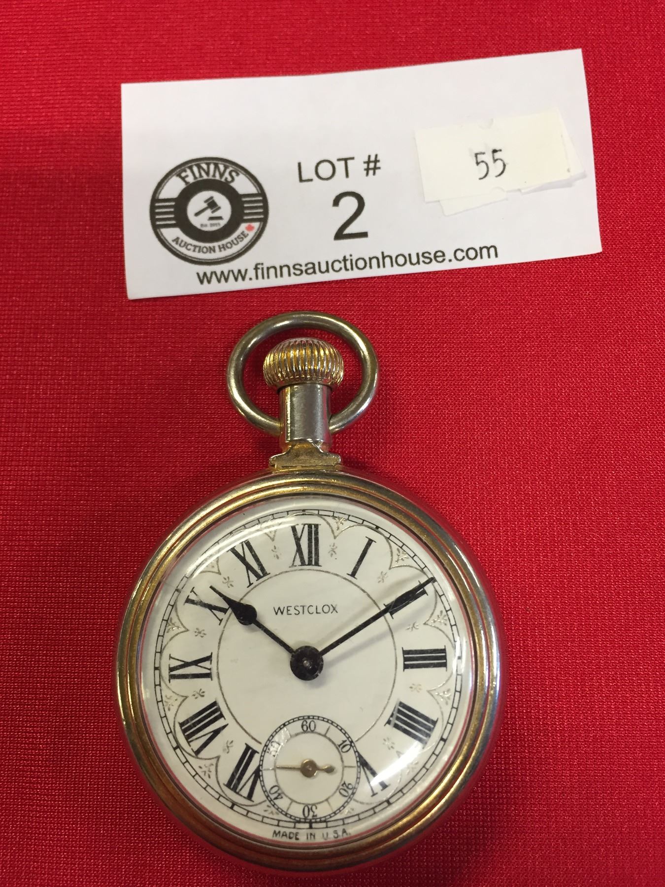 Westclock Pocket Watch Railway Locomotive on back. Needs Repair