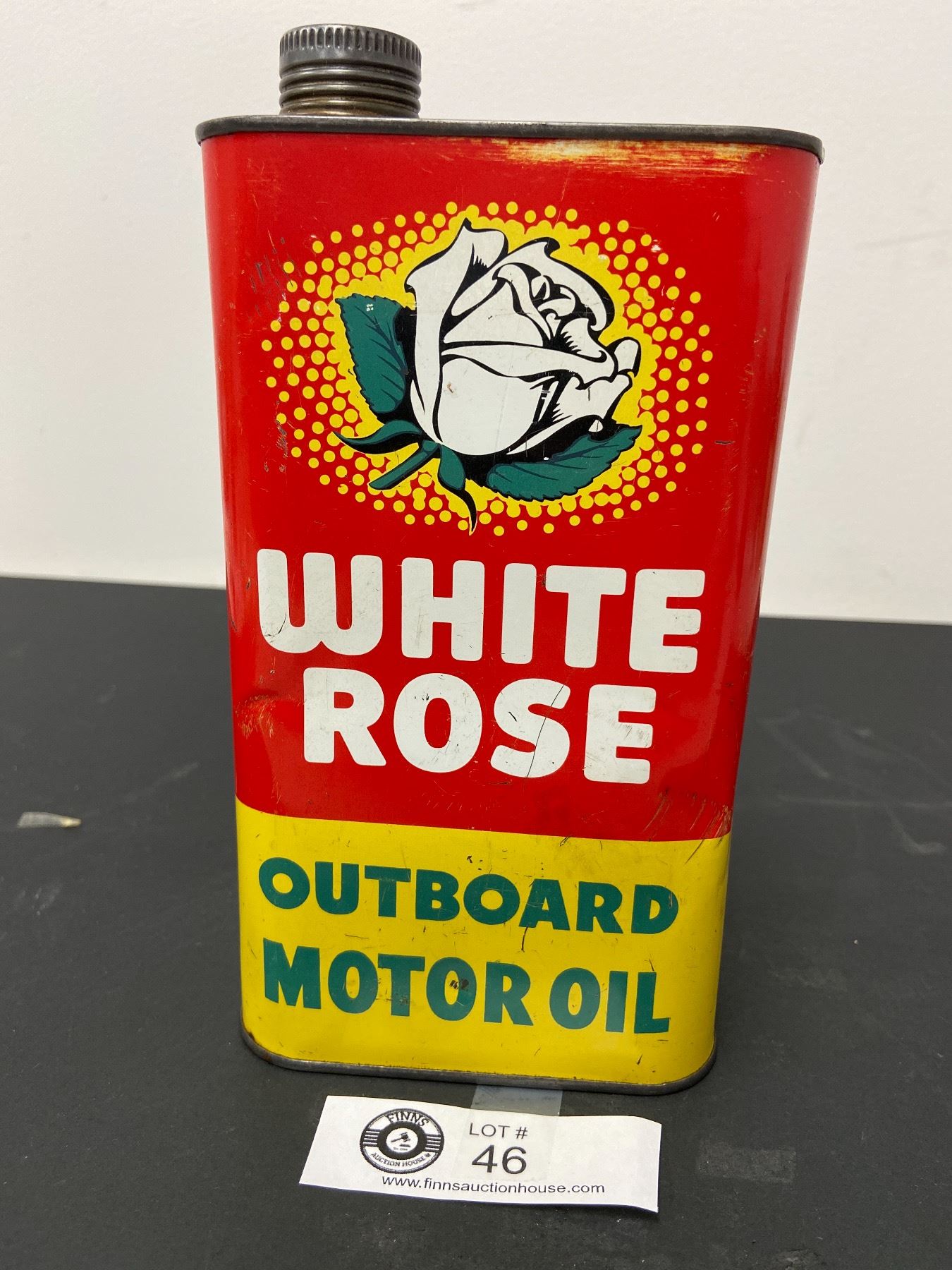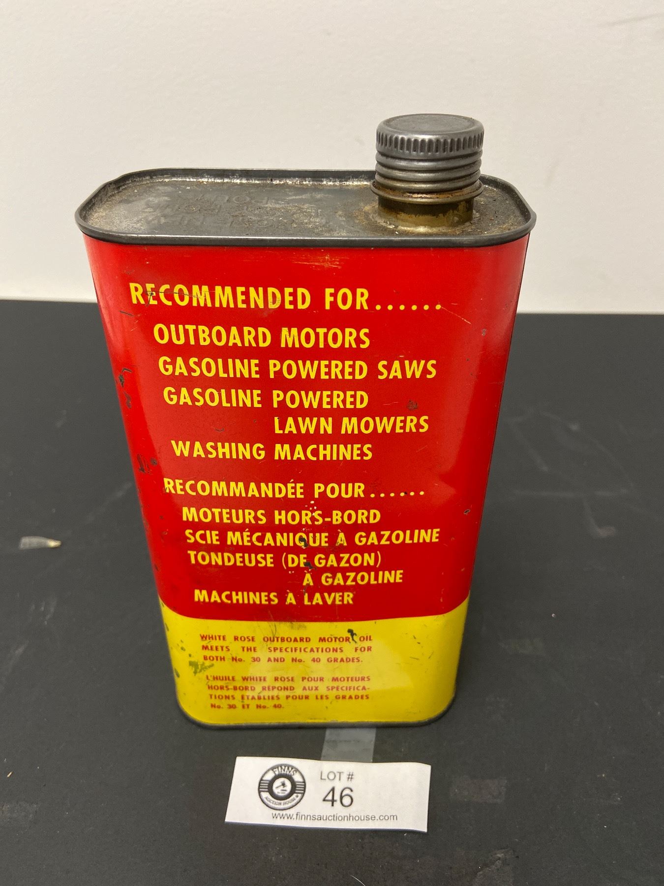 White Rose Outboard Motor oil Tin, 1 Imperial Qt lBeautiful Colours. Empty
