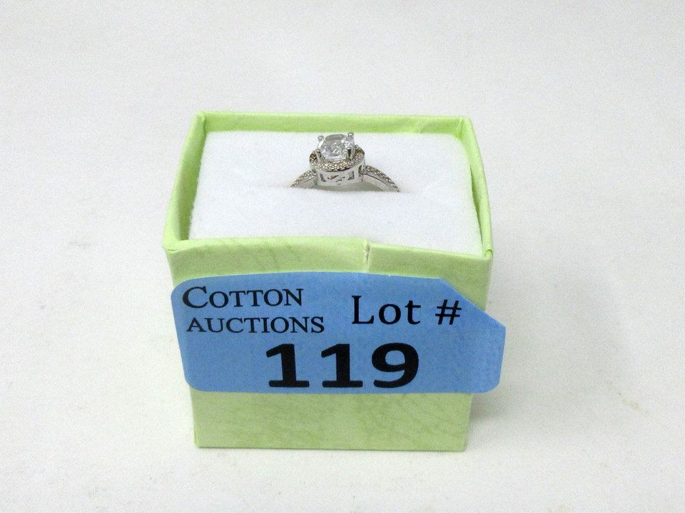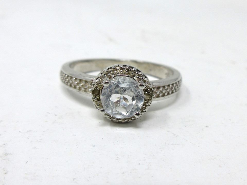 Round cut topaz with 2 side diamonds, set in sterling silver. Retail value $305