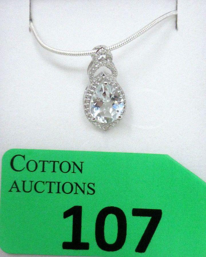 3.5 CT Pear cut topaz measuring 8 x 10 mm. Includes a chain & a $325 certificate