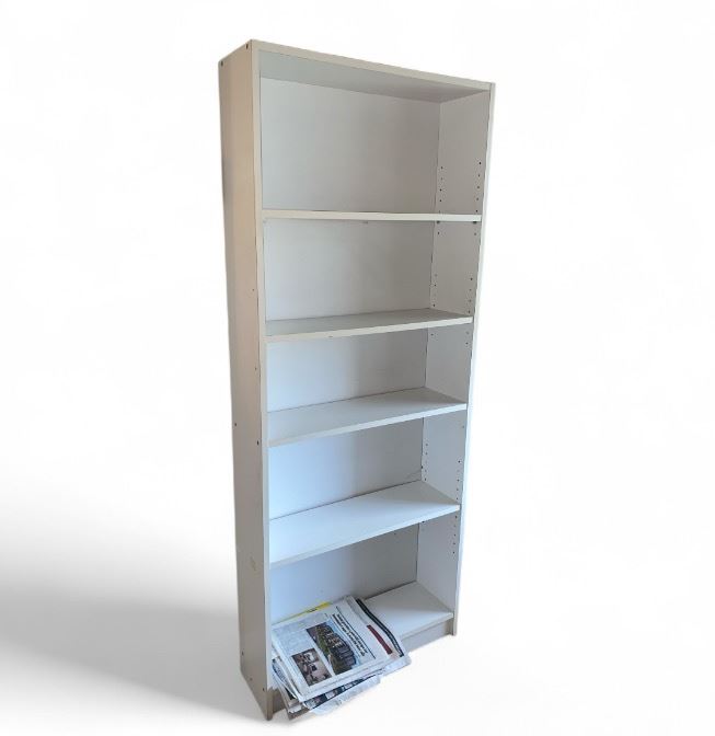 White book shelf - approx. 27 1/2in wide x 68in height x 8 1/2in depth