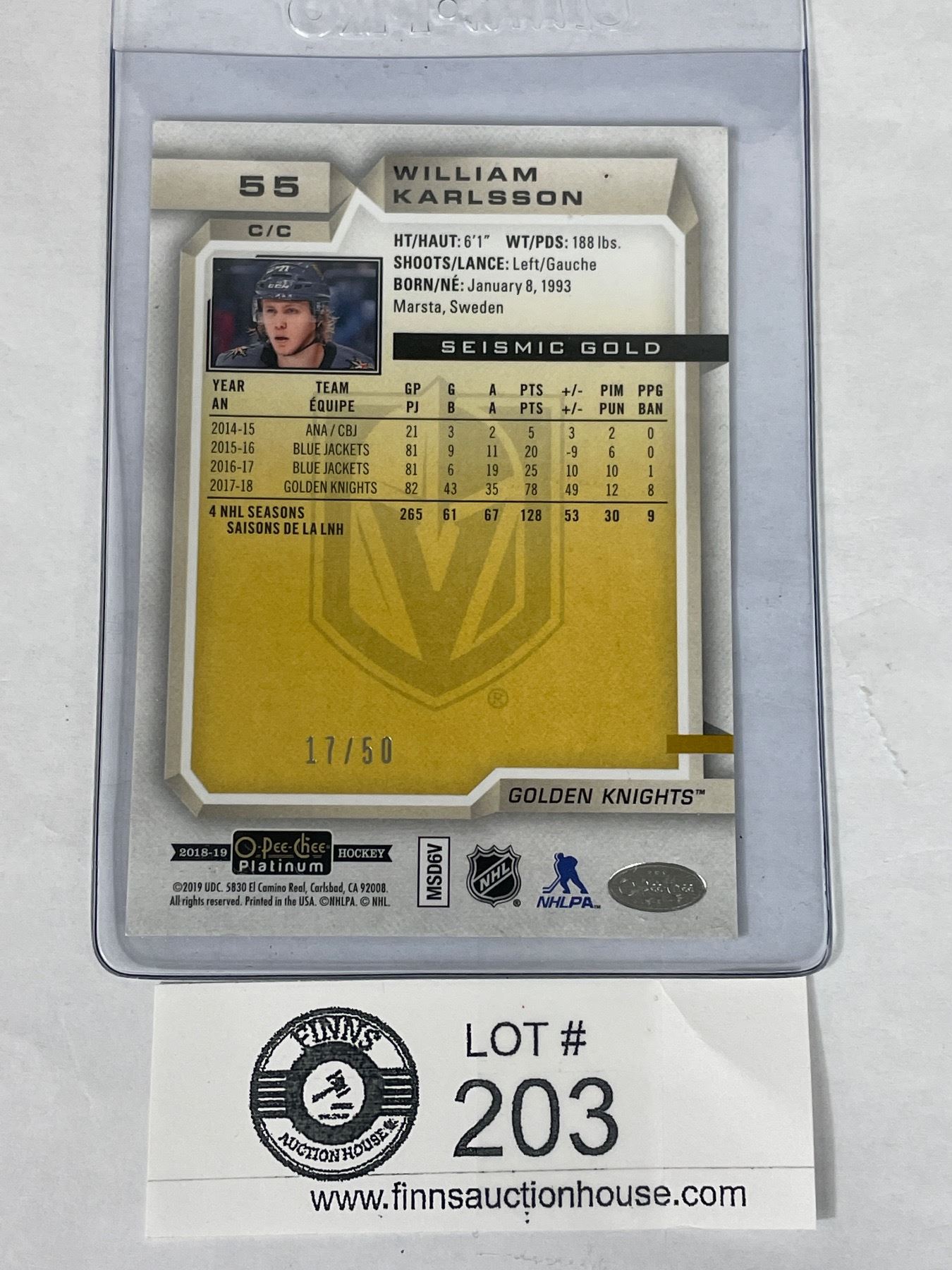 William Karlson Las Vegas Golden Knights 2018-2019 O-Pee-Chee Platinum Card 17/50