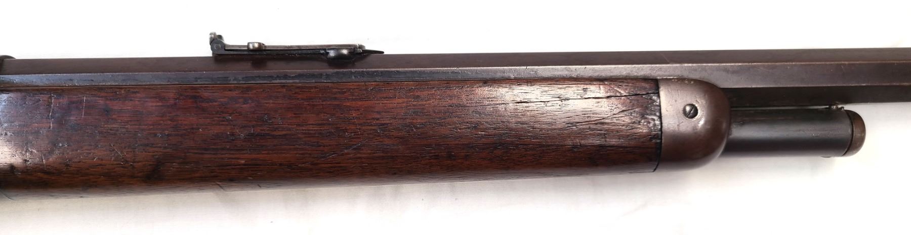 The forearm is solid with 2 splits at barrel cap end, it retains most of the original varnish
