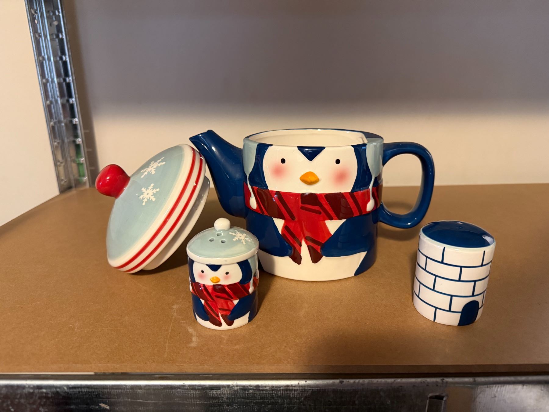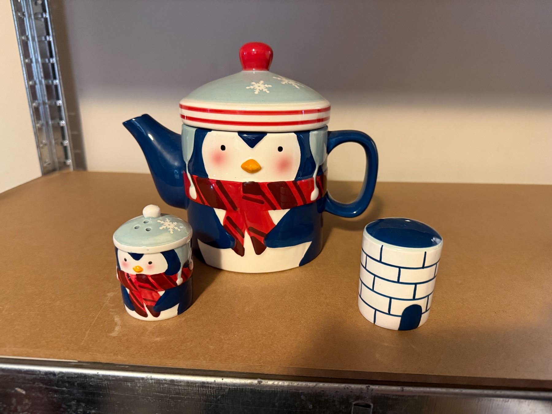 Penguin Winter design tea pot; Salt and Pepper Shakers