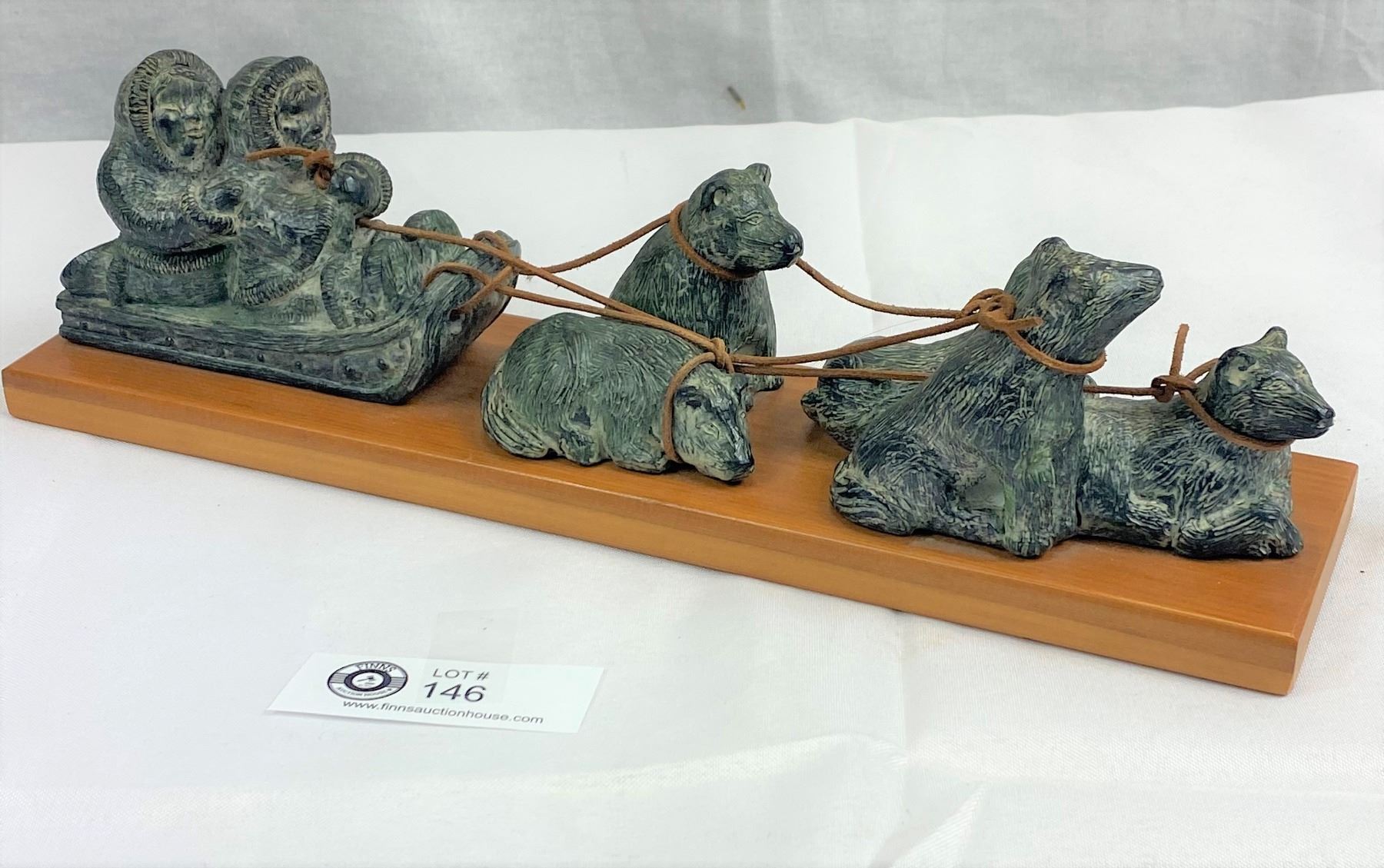 Wolf Original Soapstone Carving Inuit's Dog Sled Team