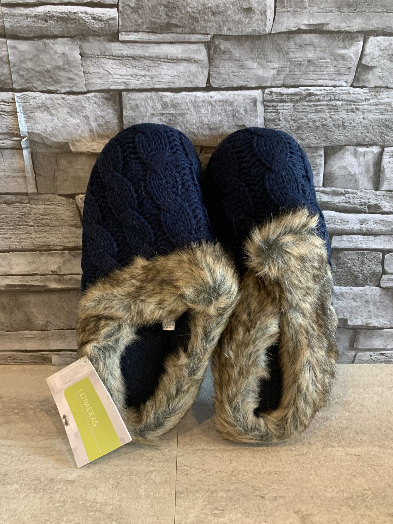 Womens Soft Memory Foam Anti Skid Sole Blue With Fur Collar Large Size (/10
