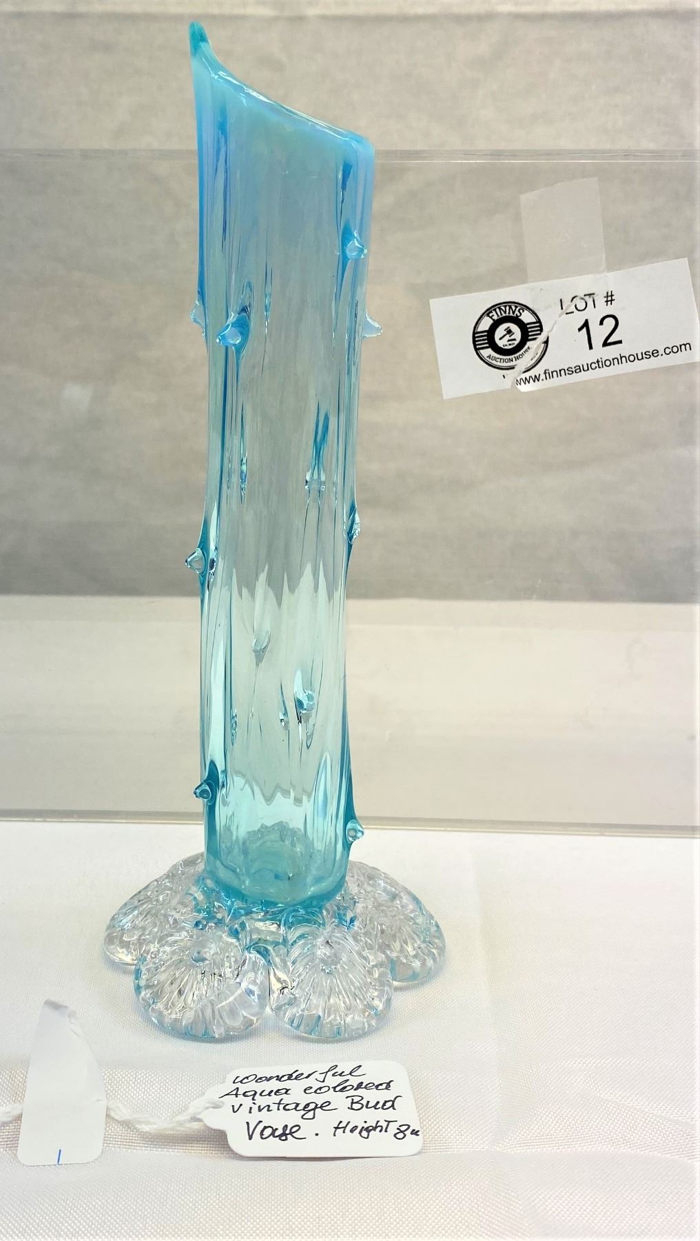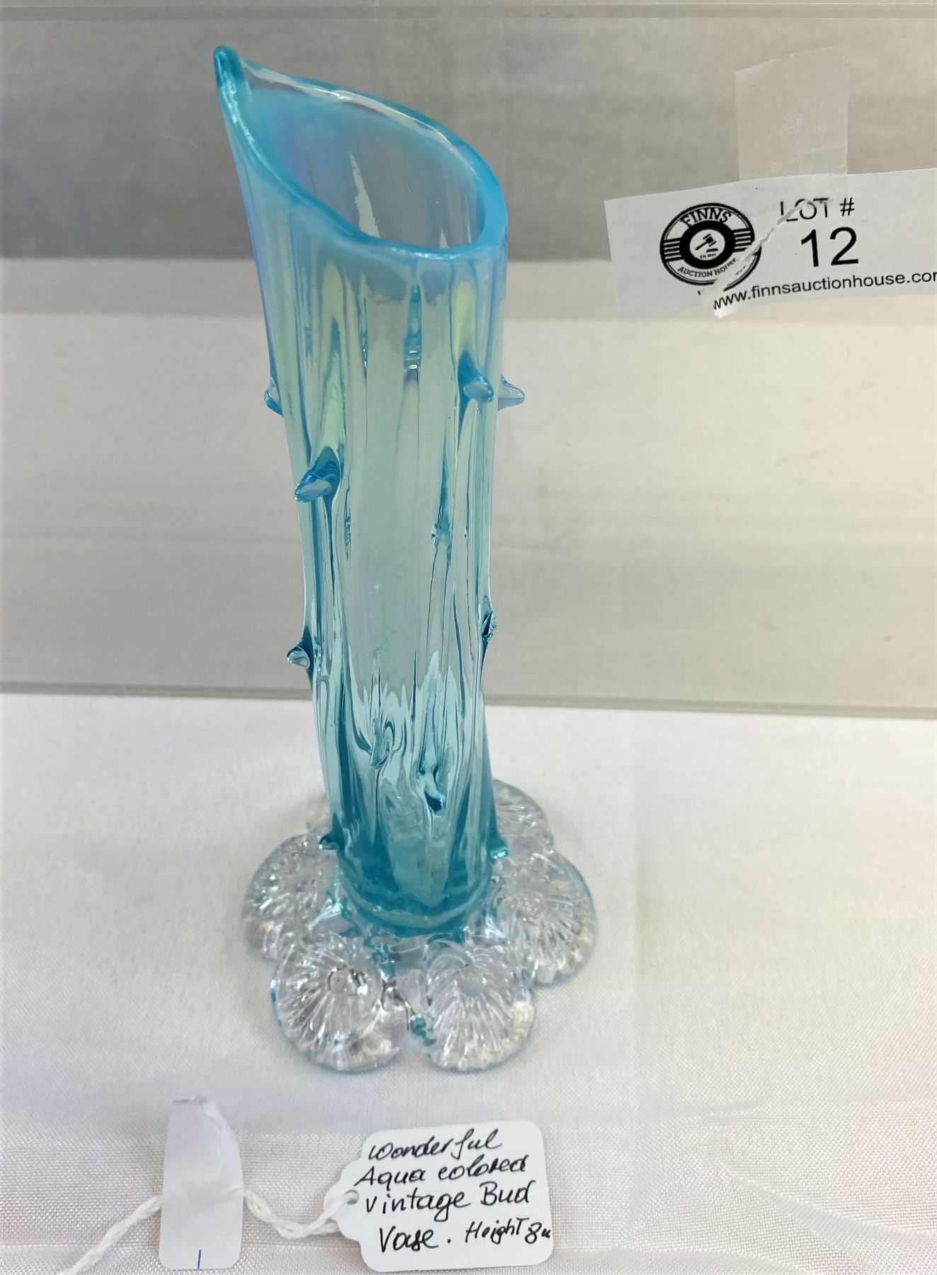 Wonderful Aqua Coloured Vintage Bud Vase, 8"T