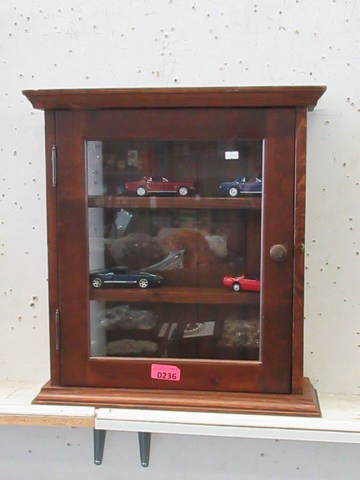 Case measures 6" x 21" x 22" tall and is missing a wood slat on the back,