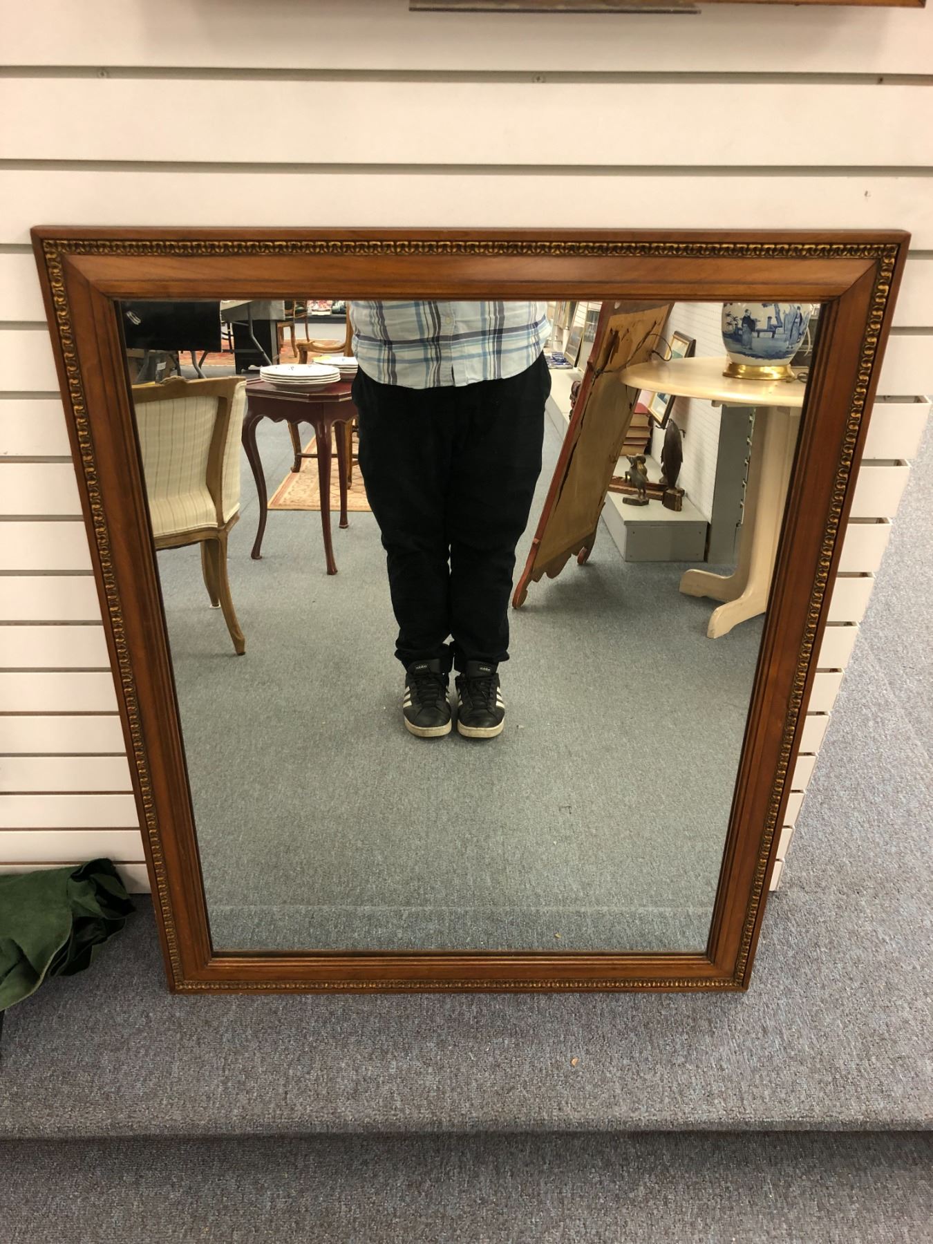 Wood framed decorative wall mirror - 32 1/2in across x 40 1/2in tall