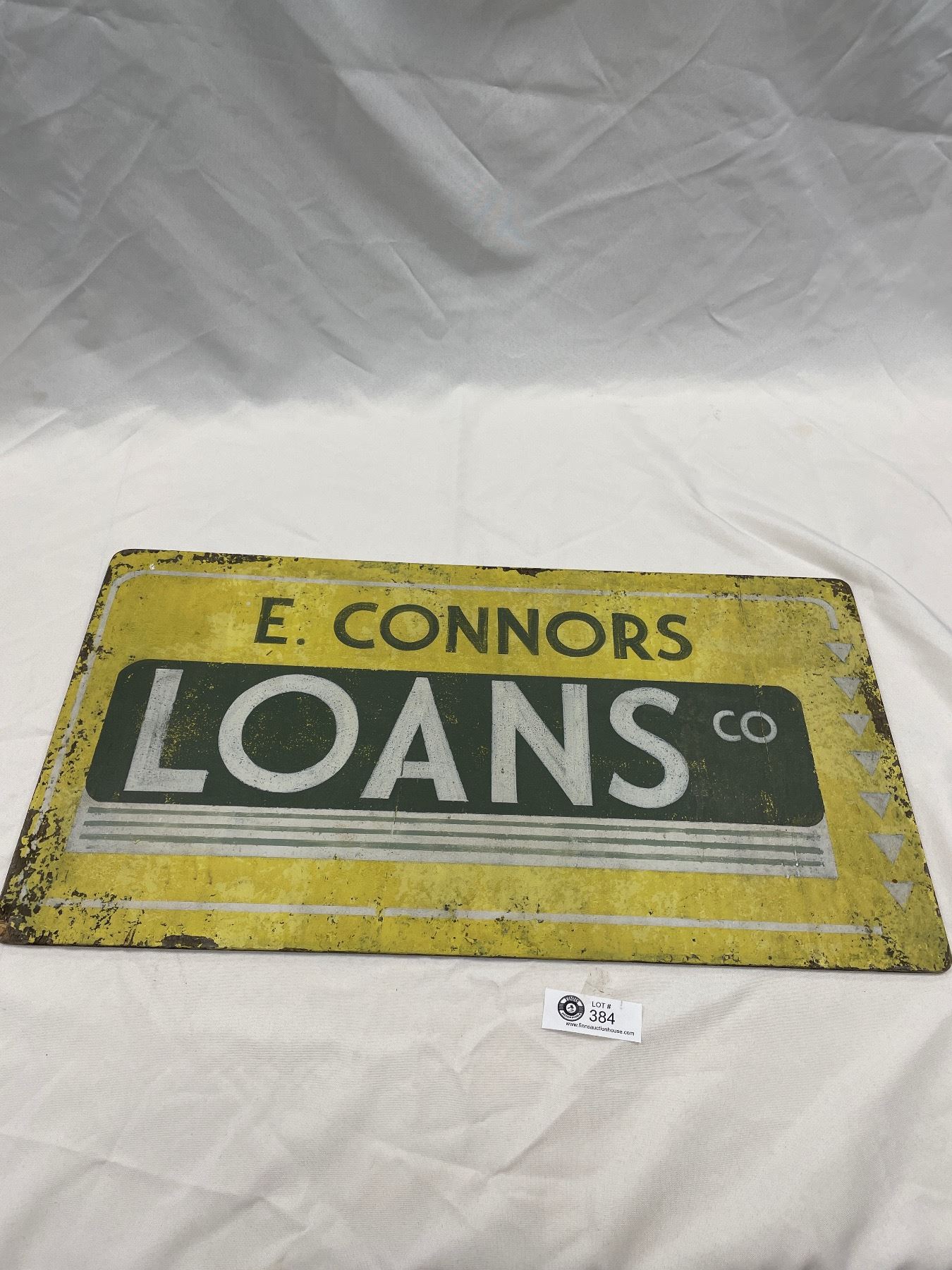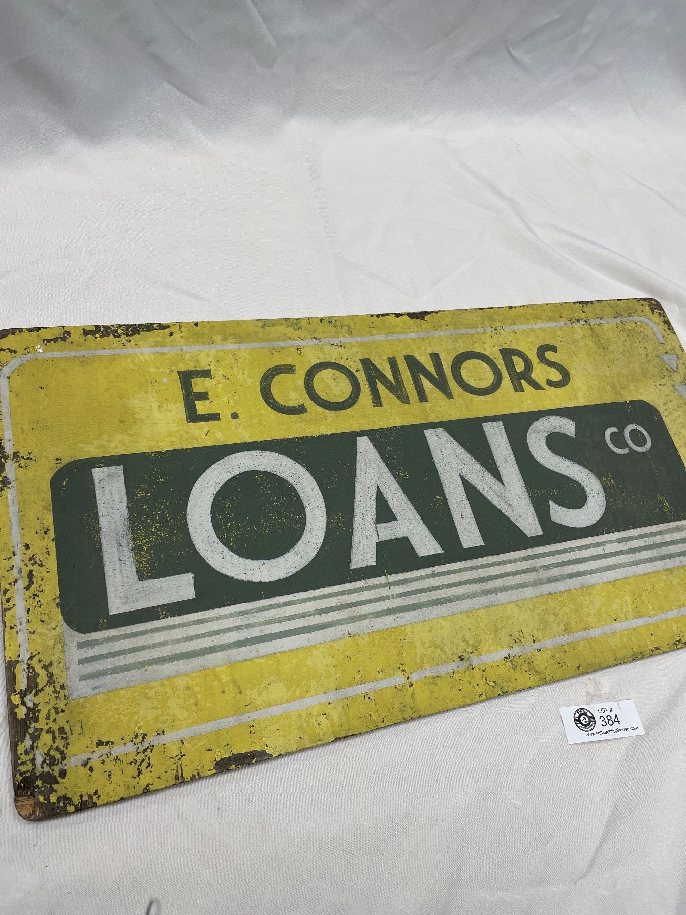 Wooden Hand Painted E.Connors Loans Co. Vintage Sign