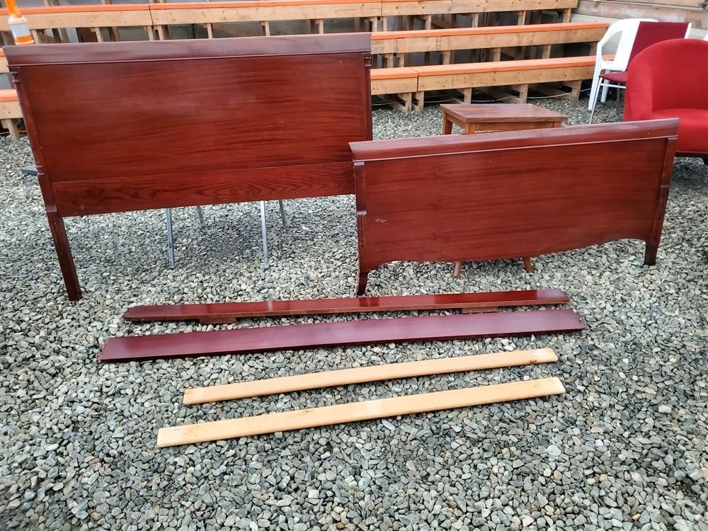 Wooden Head Board & Foot Board Dark Brown 56" Wide x 74" Long - Most Items have not been tested - 17% Buyer Fee. Payment Processed through Live Auction World ( Visa or Master Card ) pick up Saturday, or Tuesday