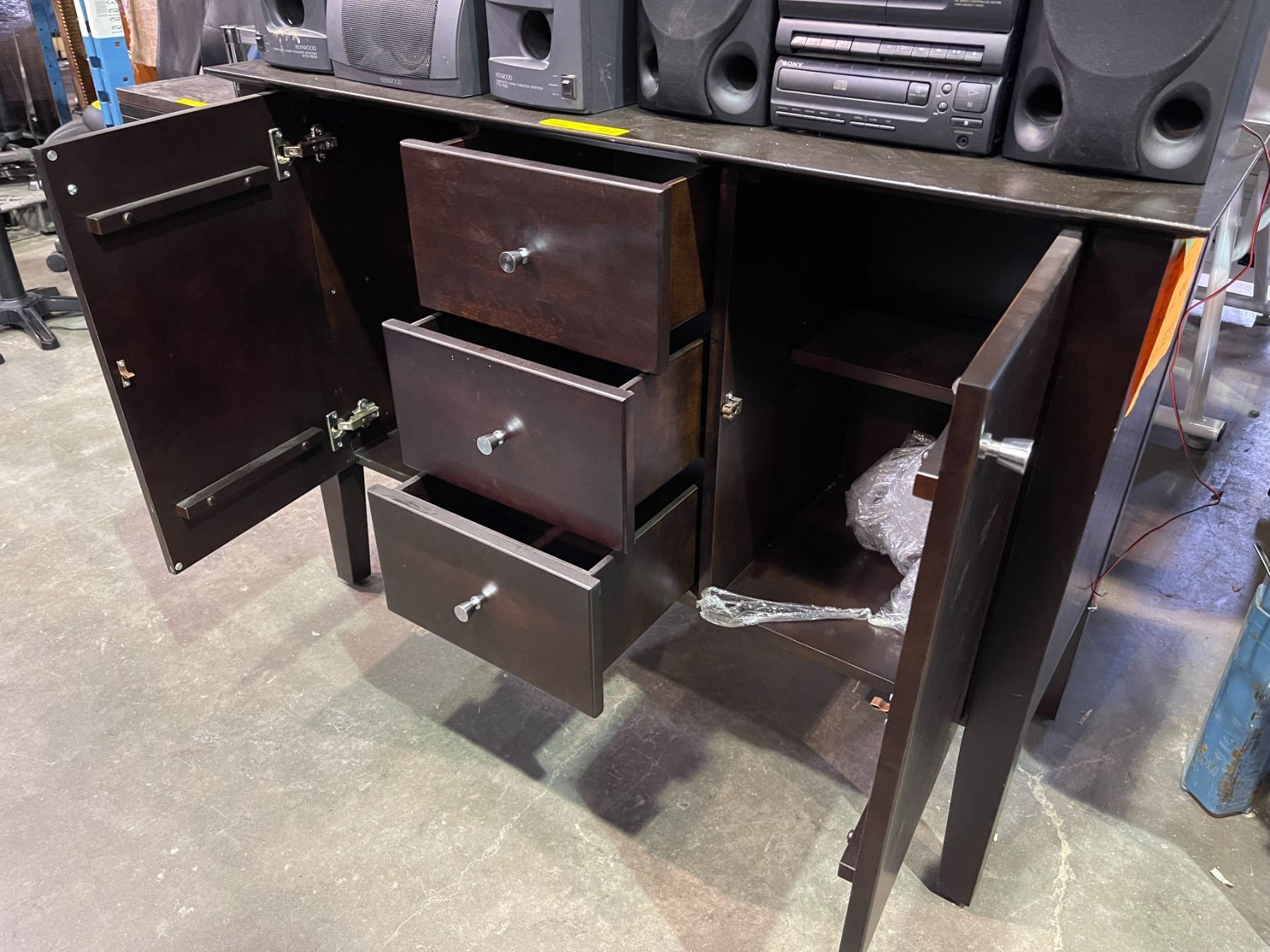 Wooden display cabinet - 2 door / 3 drawer - 48 W x 18 D x 34.5 H