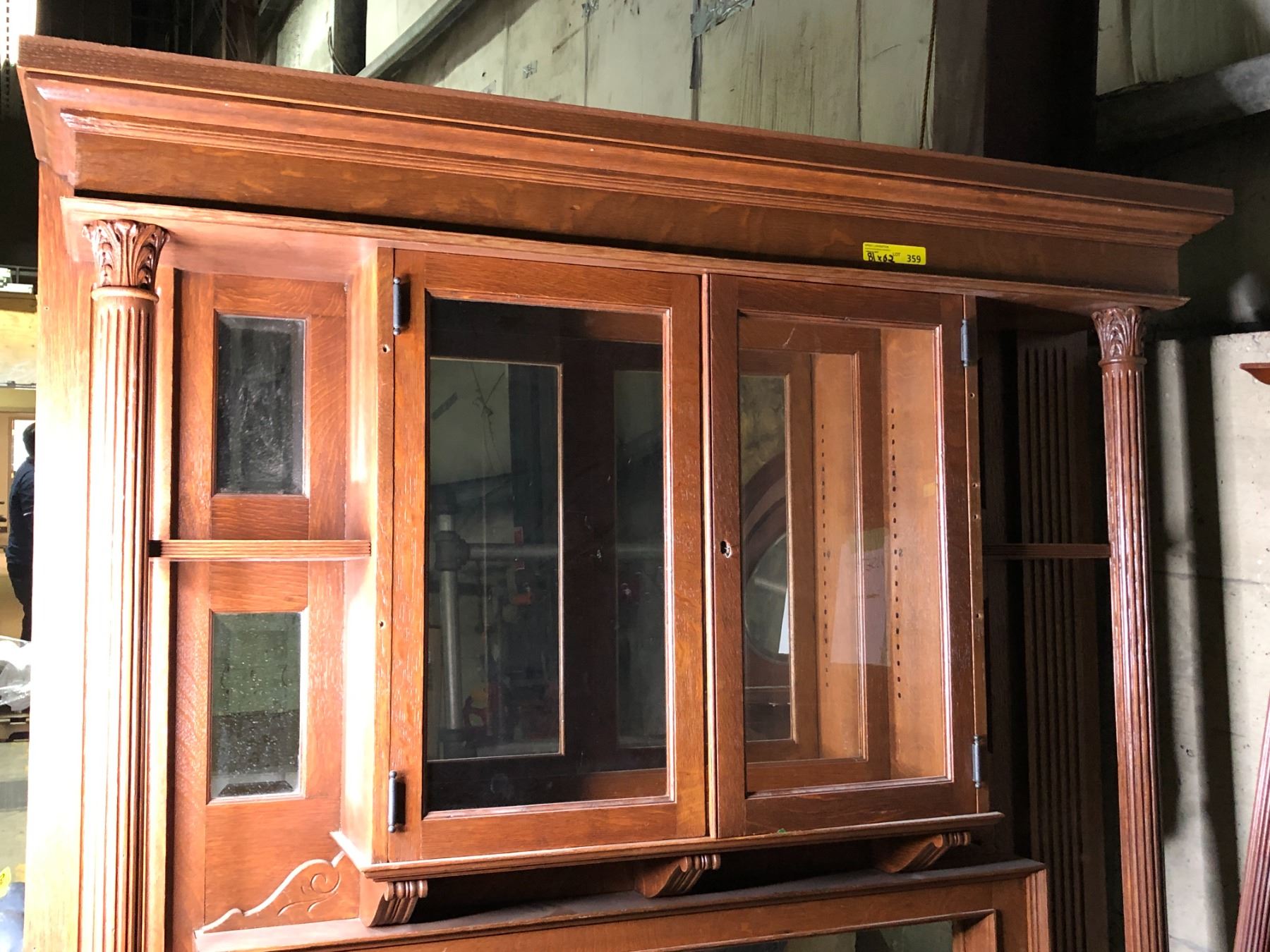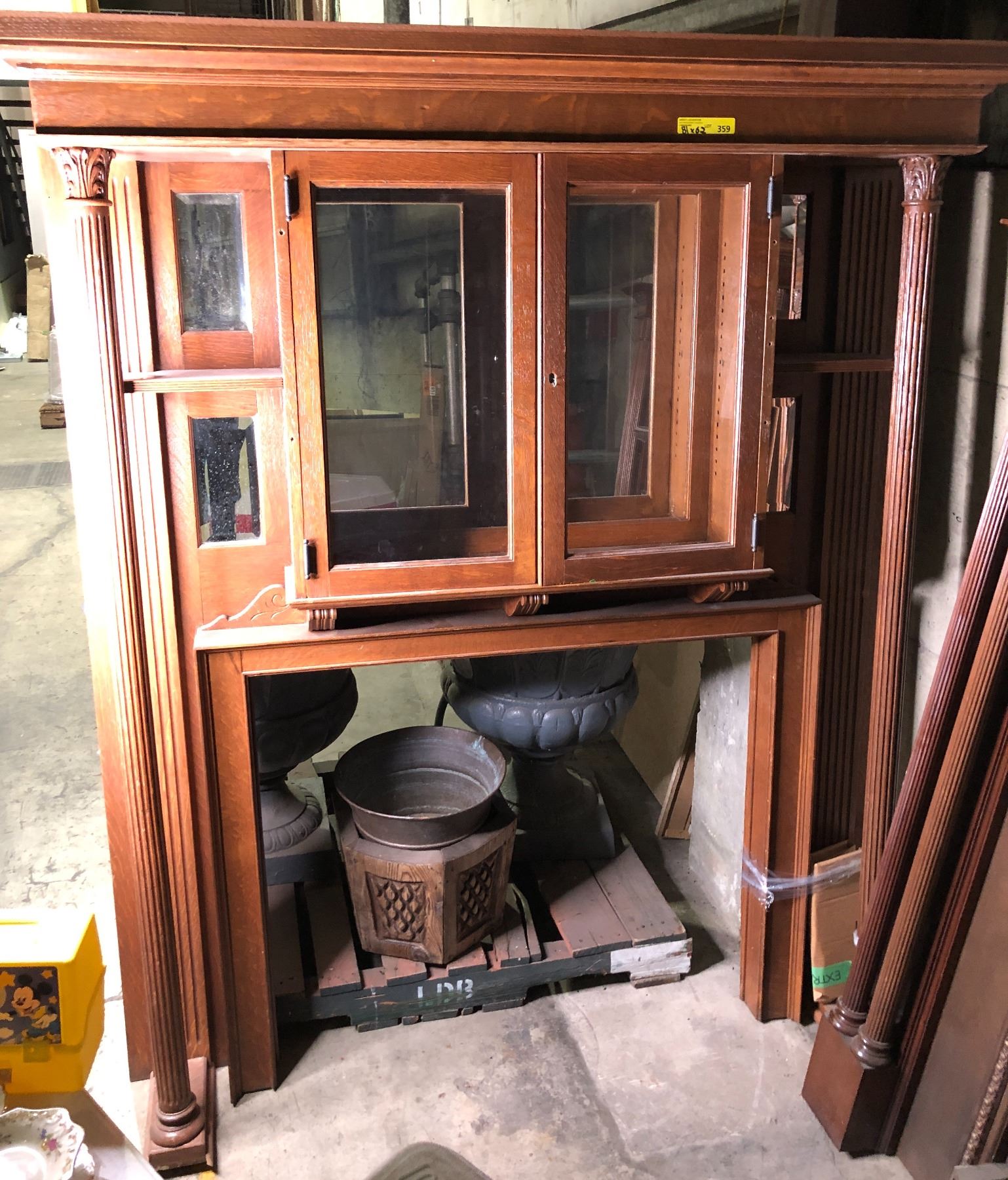 Wooden glass display cabinet - approx. 81in x 62in tall
