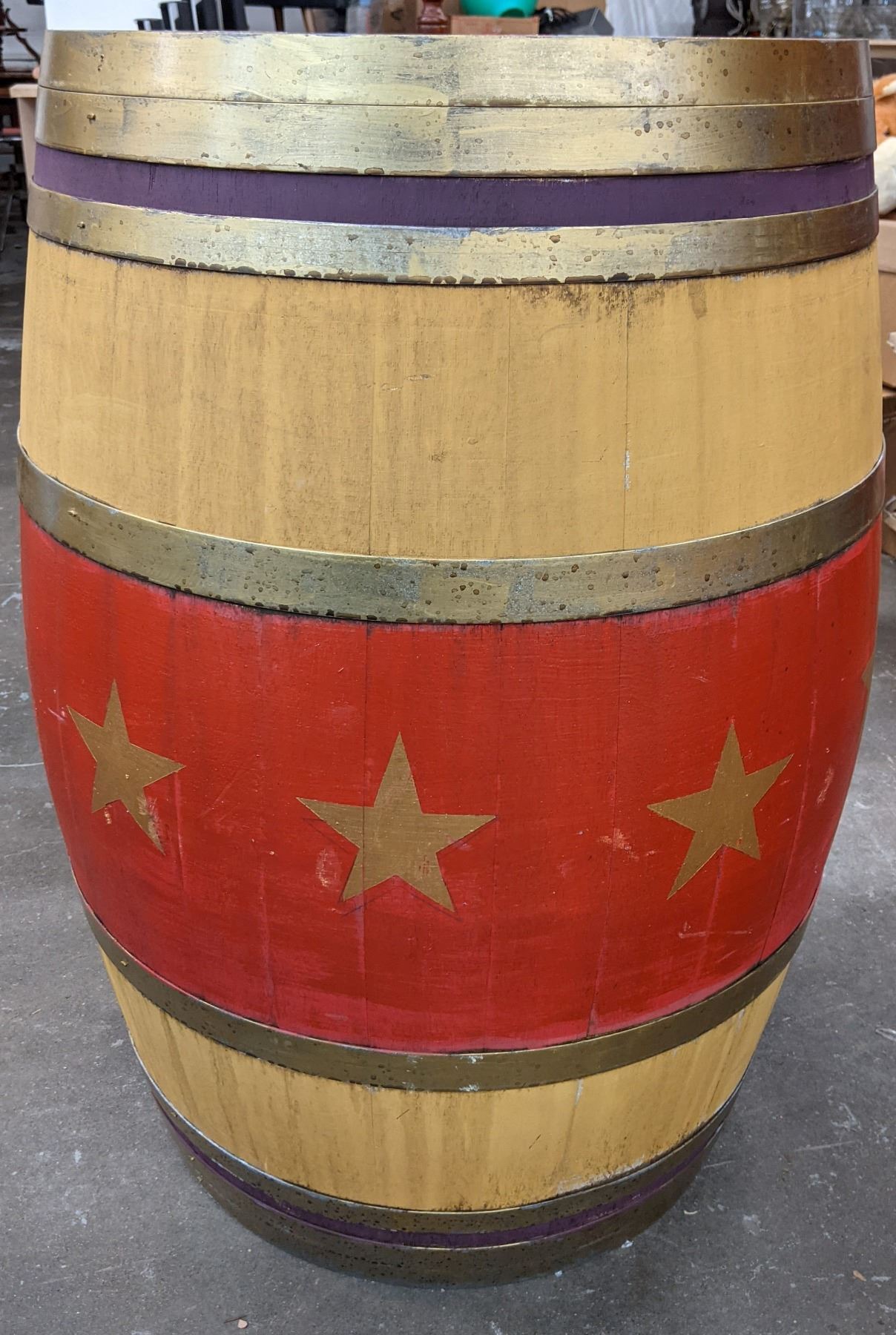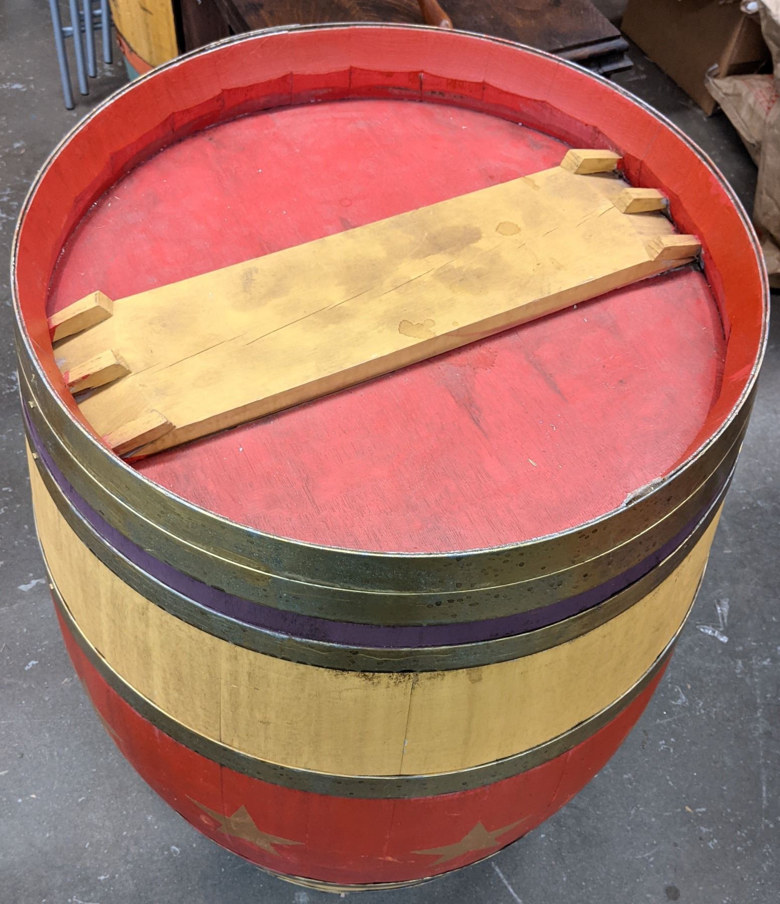 Used in fair scene, this painted barrel is useful and fun, 27 diameter x 37 high