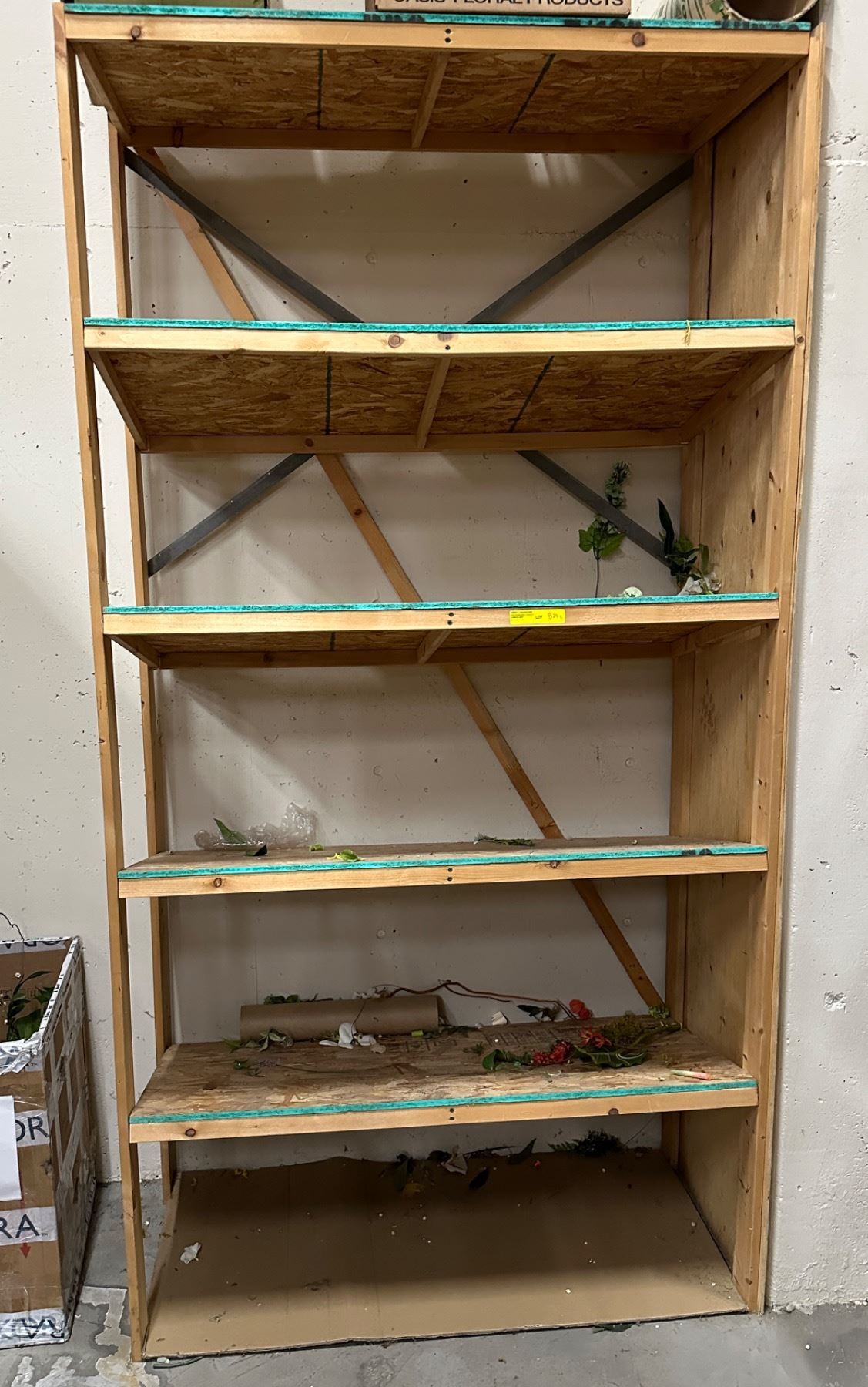 Wooden shelf rack approx. 90in H 50in W 25in D