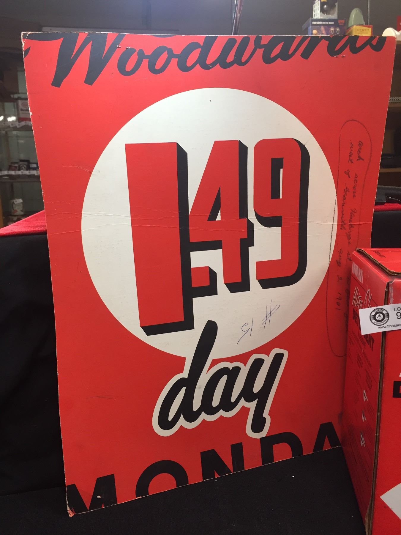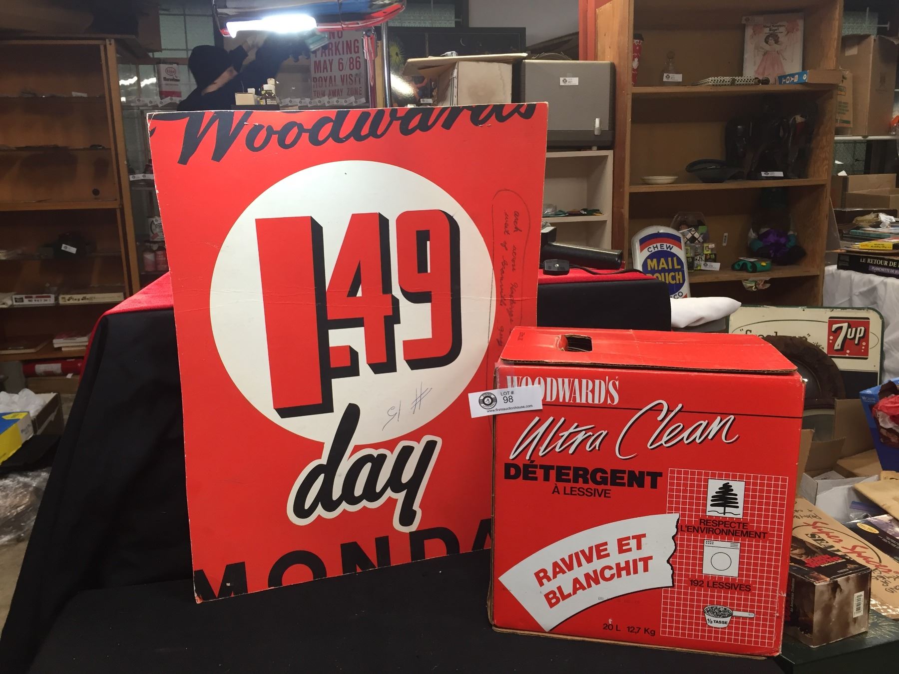 Woodwards $1.49 Days Vintage Sign Plus a Woodward's Ultra Clean Detergent Box Empty. Nice Graphics