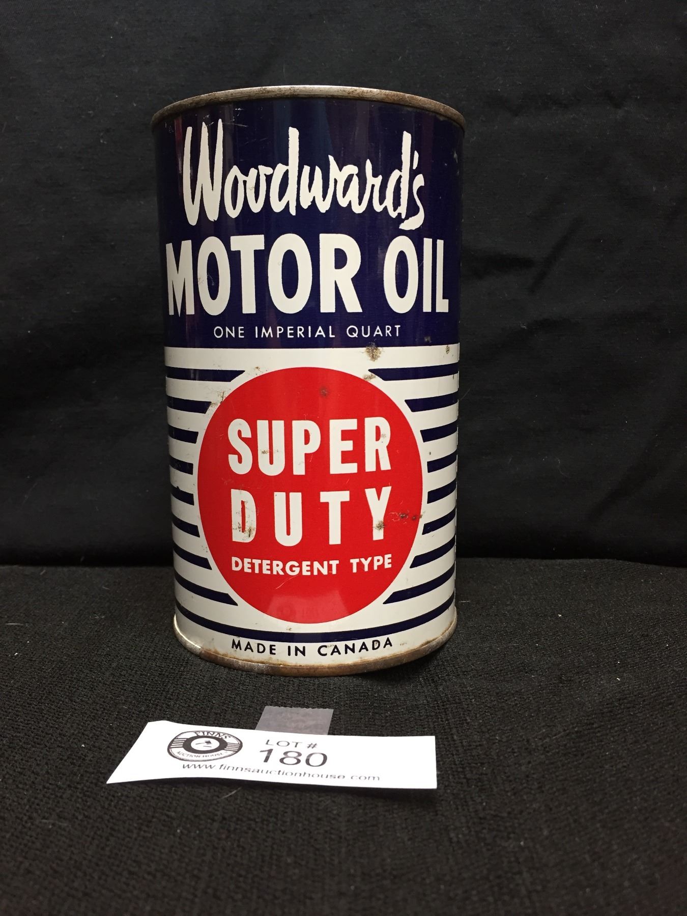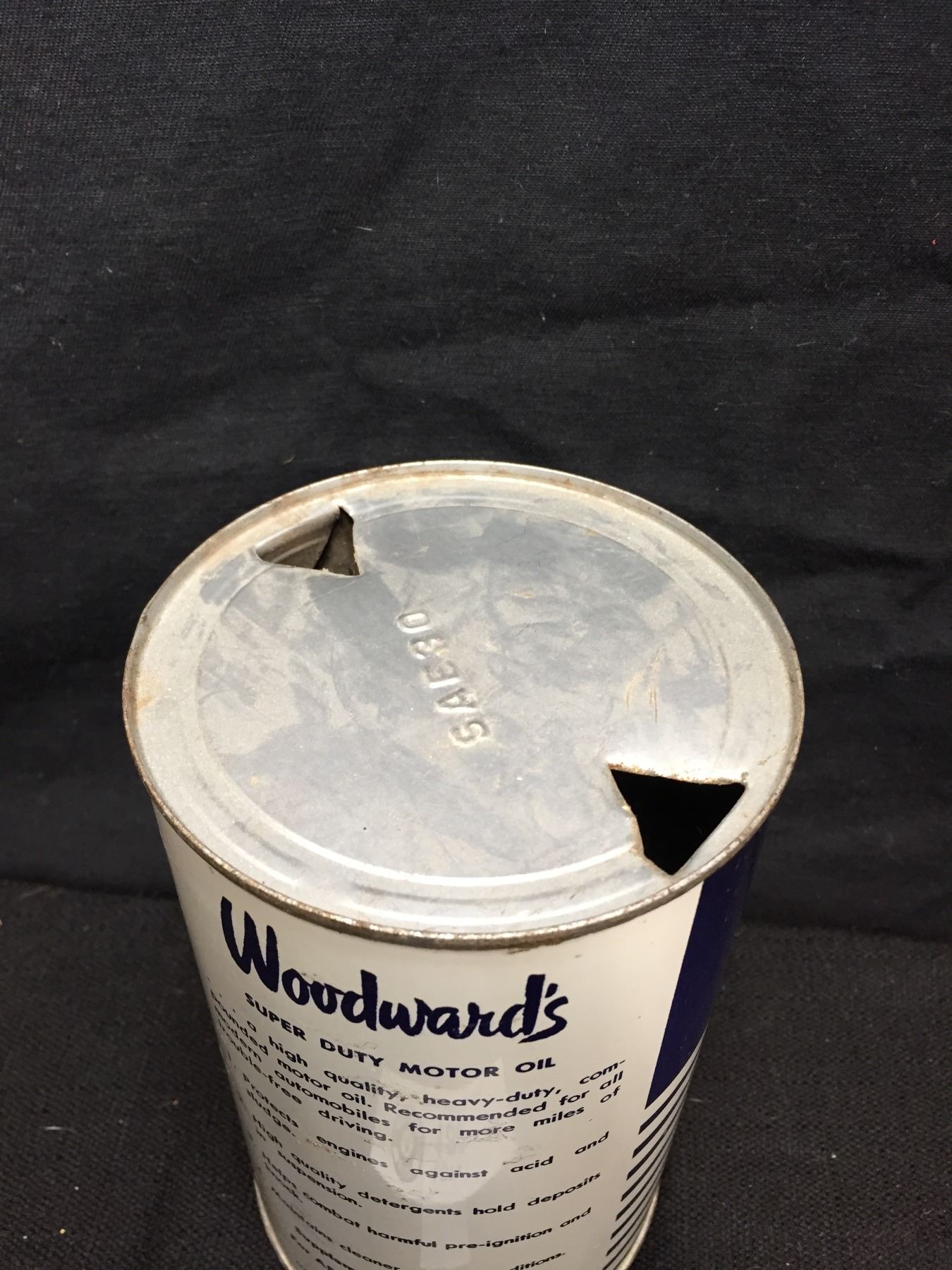 Woodwards Motor Oil 1 Imperial Quart Super Duty Made in Canada. Vintage Empty Tin
