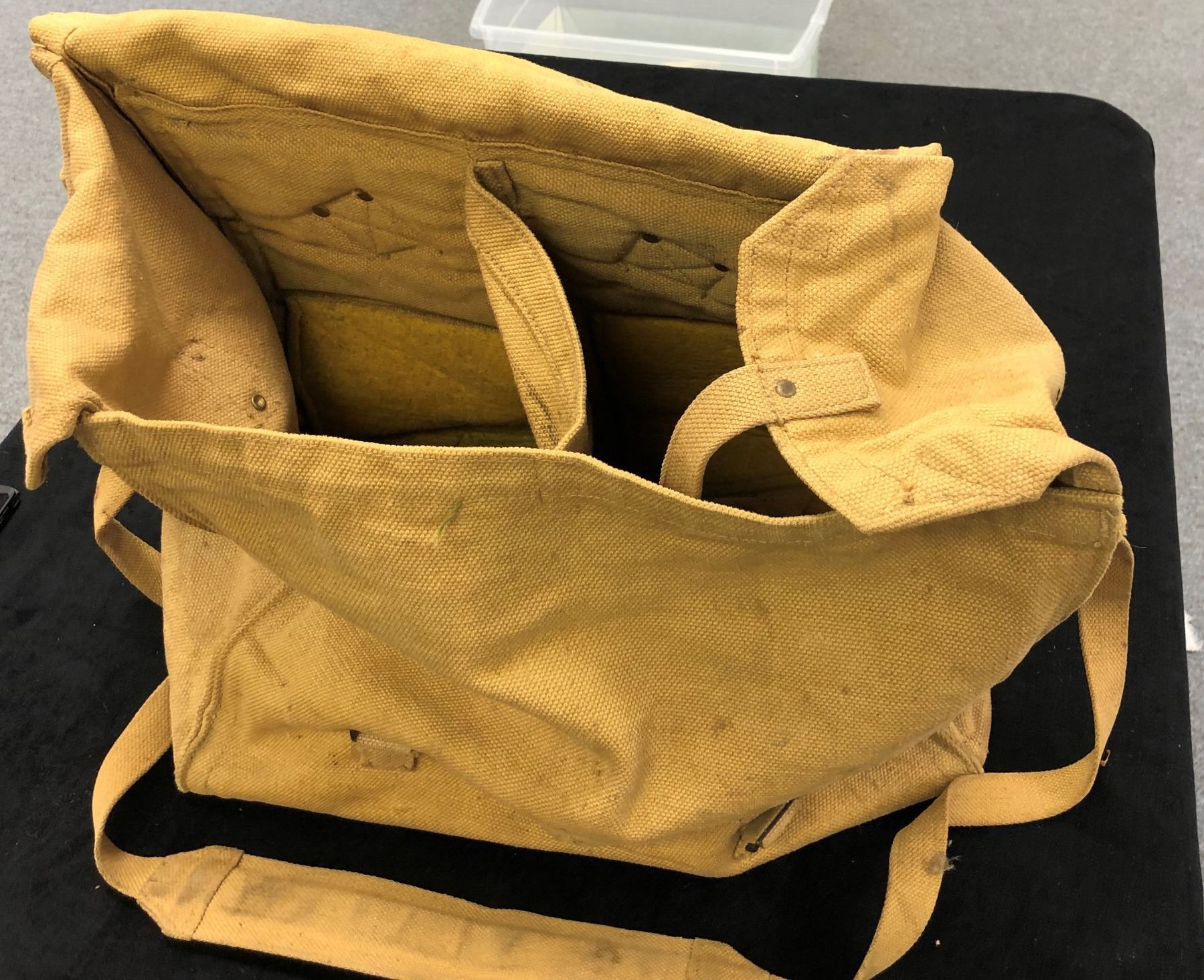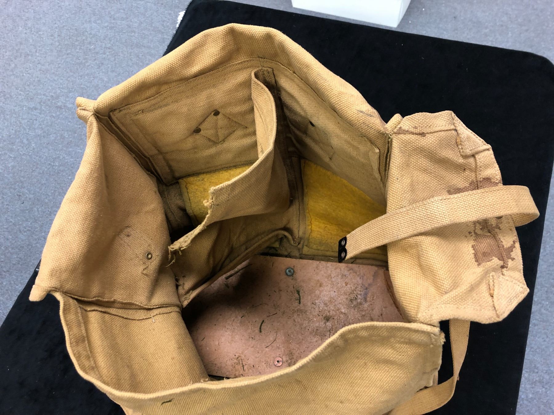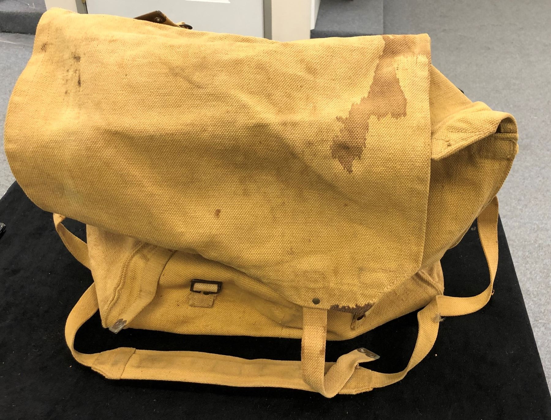 World War II hot food thermos container backpack (in good shape) - contents include patches & materials for fixing & addressing other soldier's uniforms