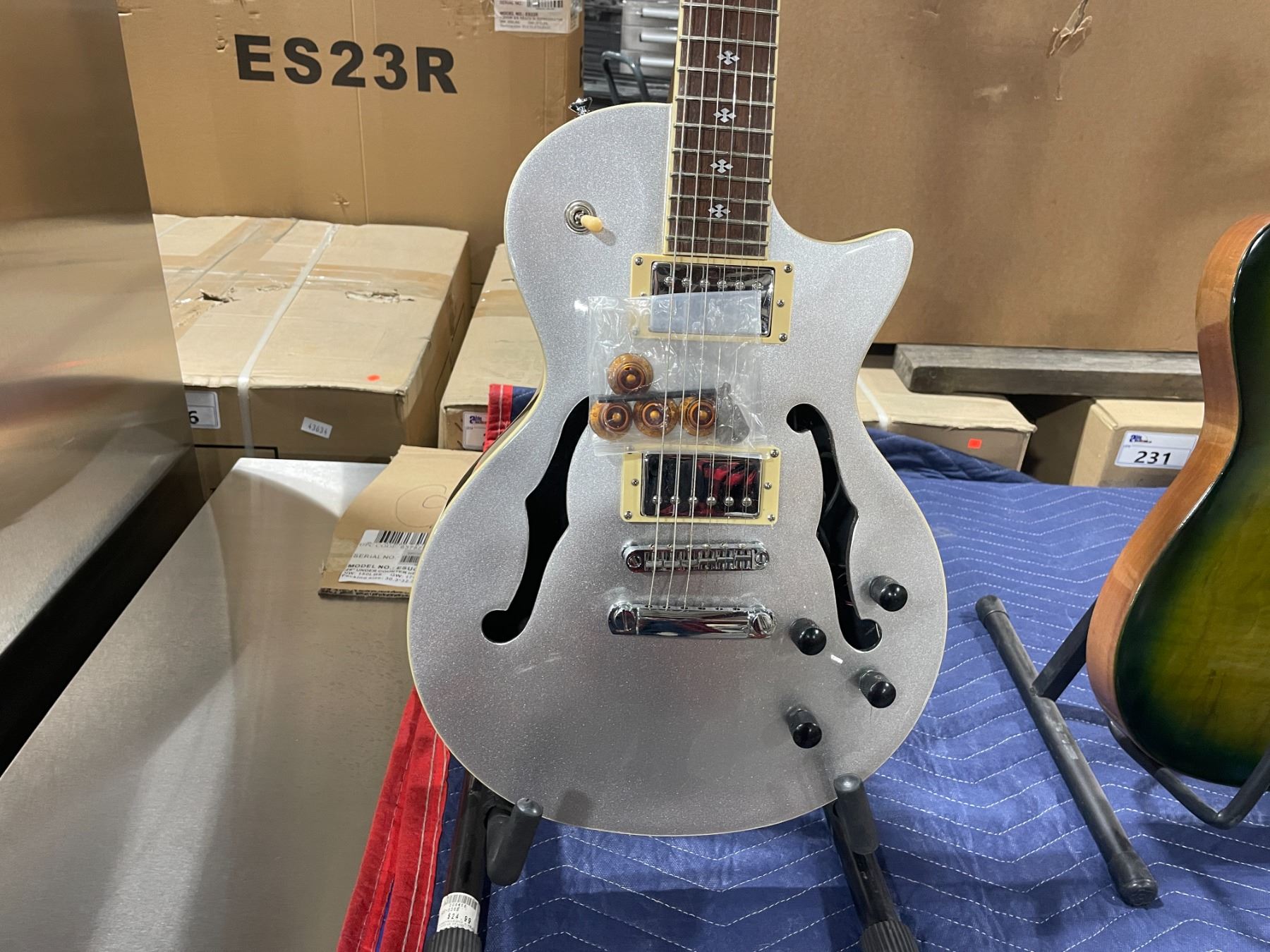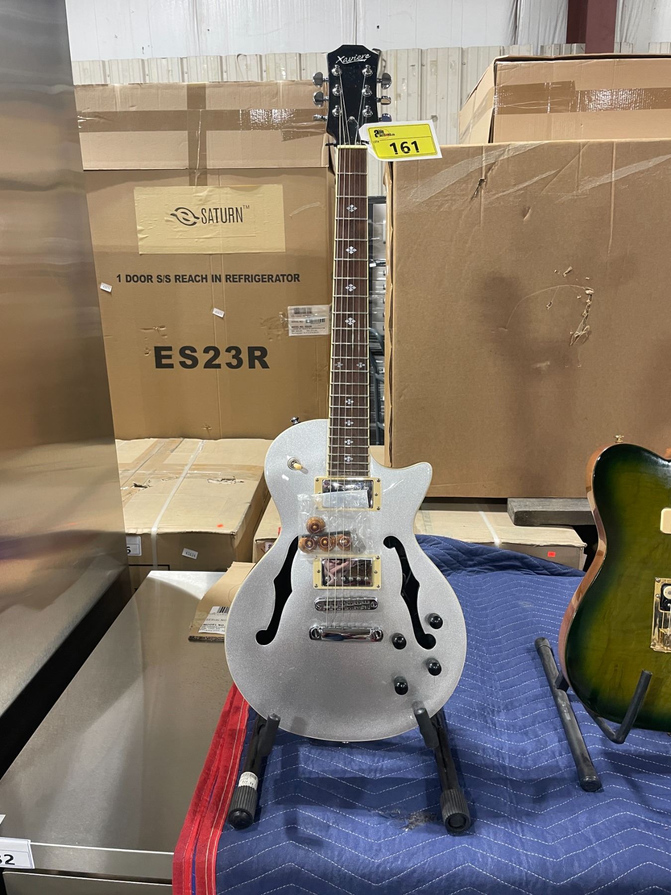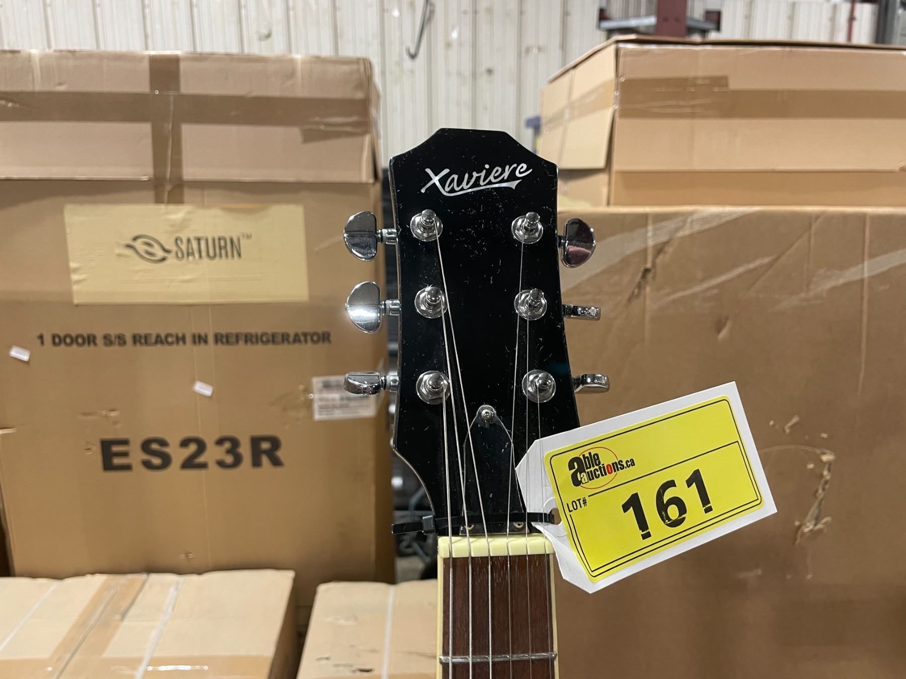 XAVIERE SILVER METALLIC BODY 6 STRING ELECTRIC GUITAR WITH WALNUT INLAY NECK ( SMALL CRACK UNDER SECOND BOTTOM KNOB )