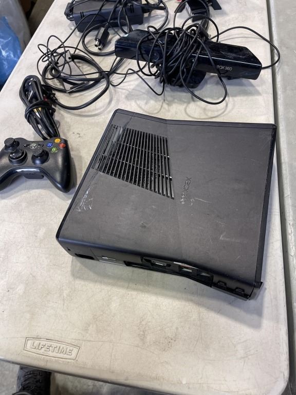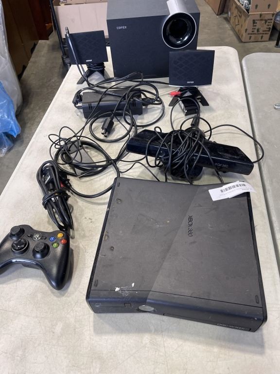 XBOX 360 CONSOLE, CONTROLLERS AND POWER SUPPLY, AND COMPUTER SPEAKER SYSTEM