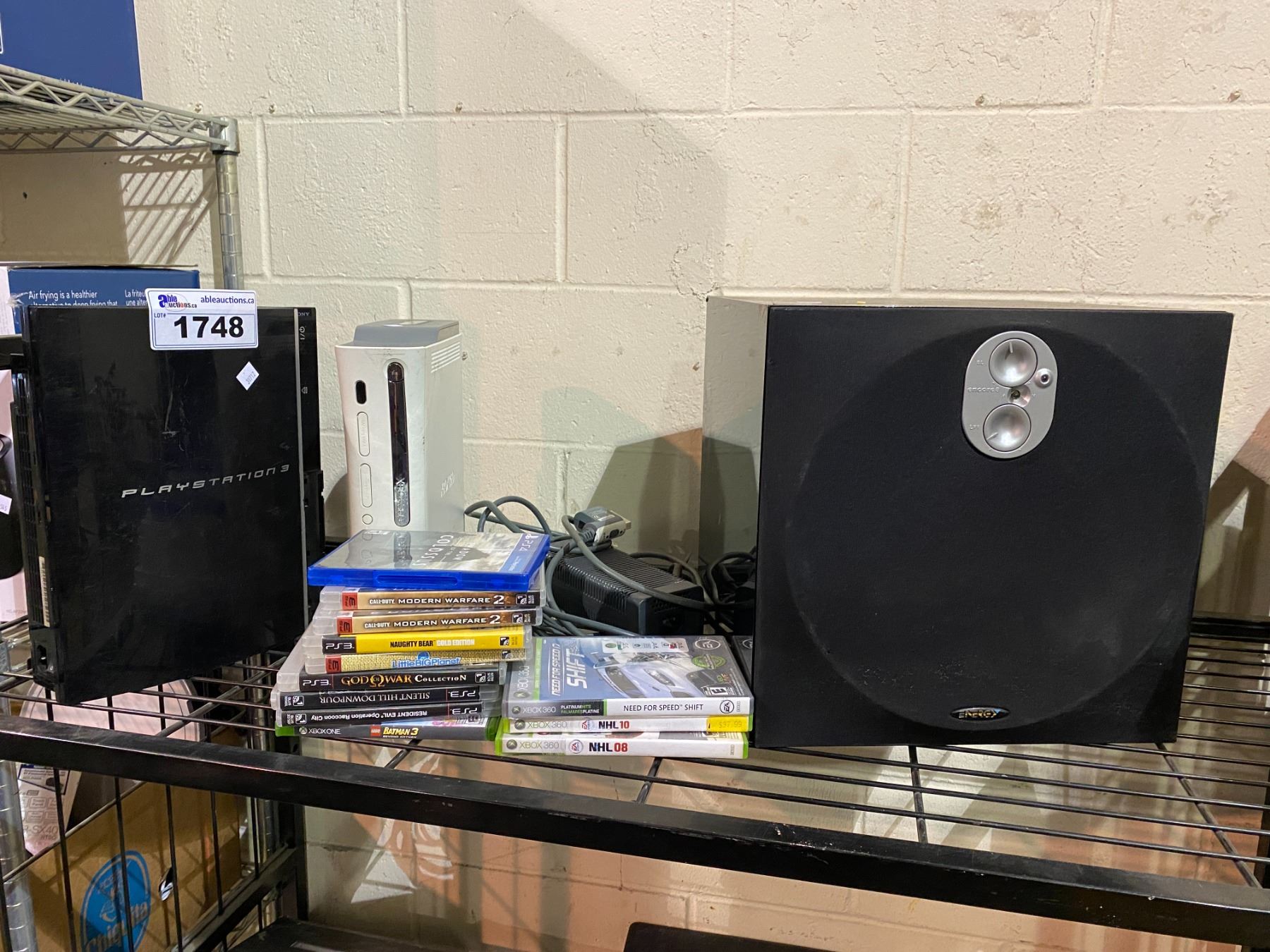 XBOX 360, PS3, ENERGY SUBWOOFER, ASSORTED XBOX X360 & PS3 GAMES