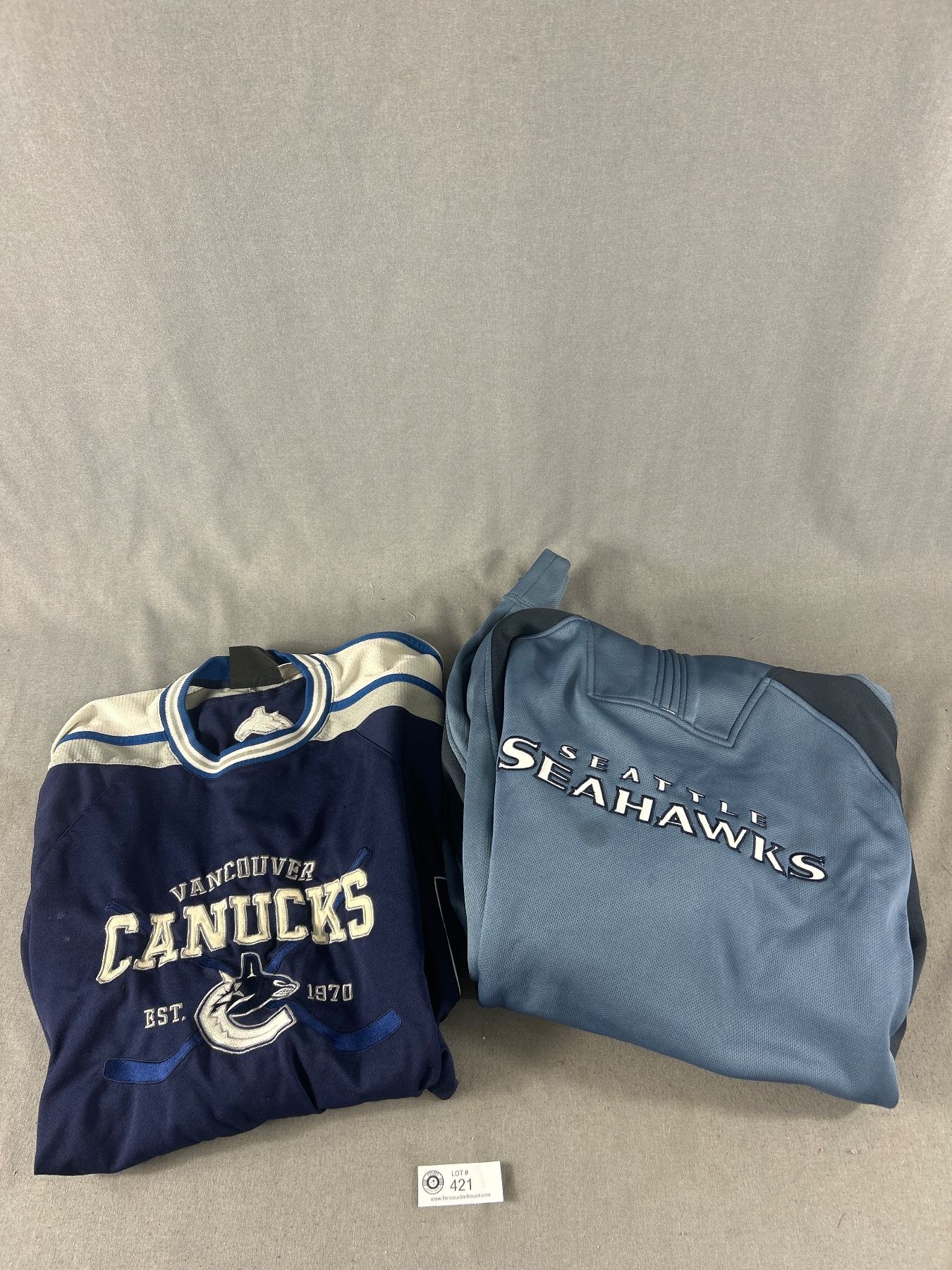 XL Seattle Seahwaks Hoodie and XL Vancouver Canucks Shirt